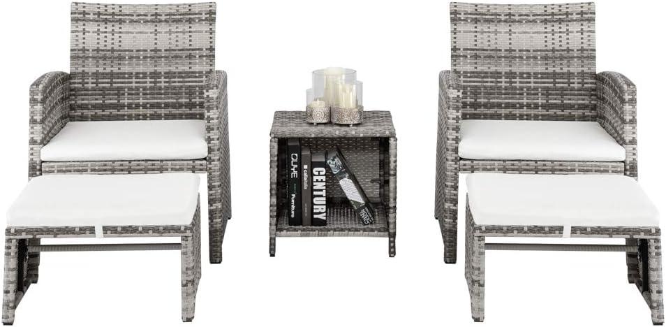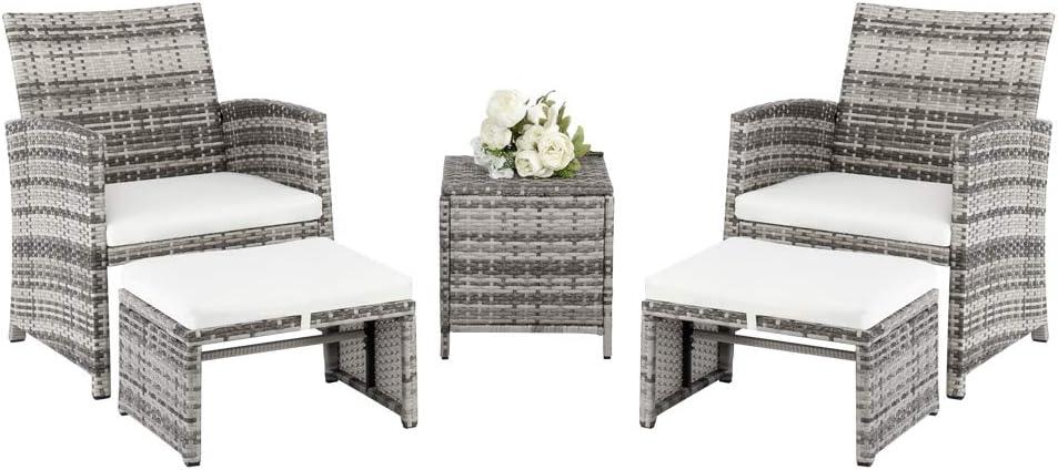 We recently had the chance to spend some quality time with the Outdoor Patio Furniture Sets Patio Set-the 5-piece gray rattan conversation set designed for backyard, porch, or poolside use. This set includes two spacious chairs, two footstools, and a compact coffee table, all crafted from high-quality PE rattan with sturdy iron frames. Over the past few weeks, we put its durability, comfort, and style to the test, enjoying everything from morning coffees to relaxed evening chats. In this review, we’ll share our firsthand impressions of how well this furniture set holds up in everyday outdoor settings, and whether it lives up to its promise of durability, comfort, and seamless design integration.