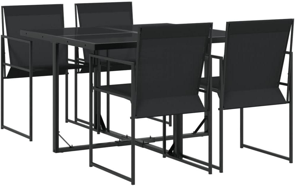 After spending some quality time with the 5 Piece Patio Dining Set Featuring Black Textilene Fabric, Powder-Coated Steel Frame and Tempered Glass Tabletop, we’ve gathered our thoughts on what makes it stand out – and where it might leave you wanting. Let’s dive into the highlights and the trade-offs so you can decide if it’s the perfect match for your outdoor oasis.
