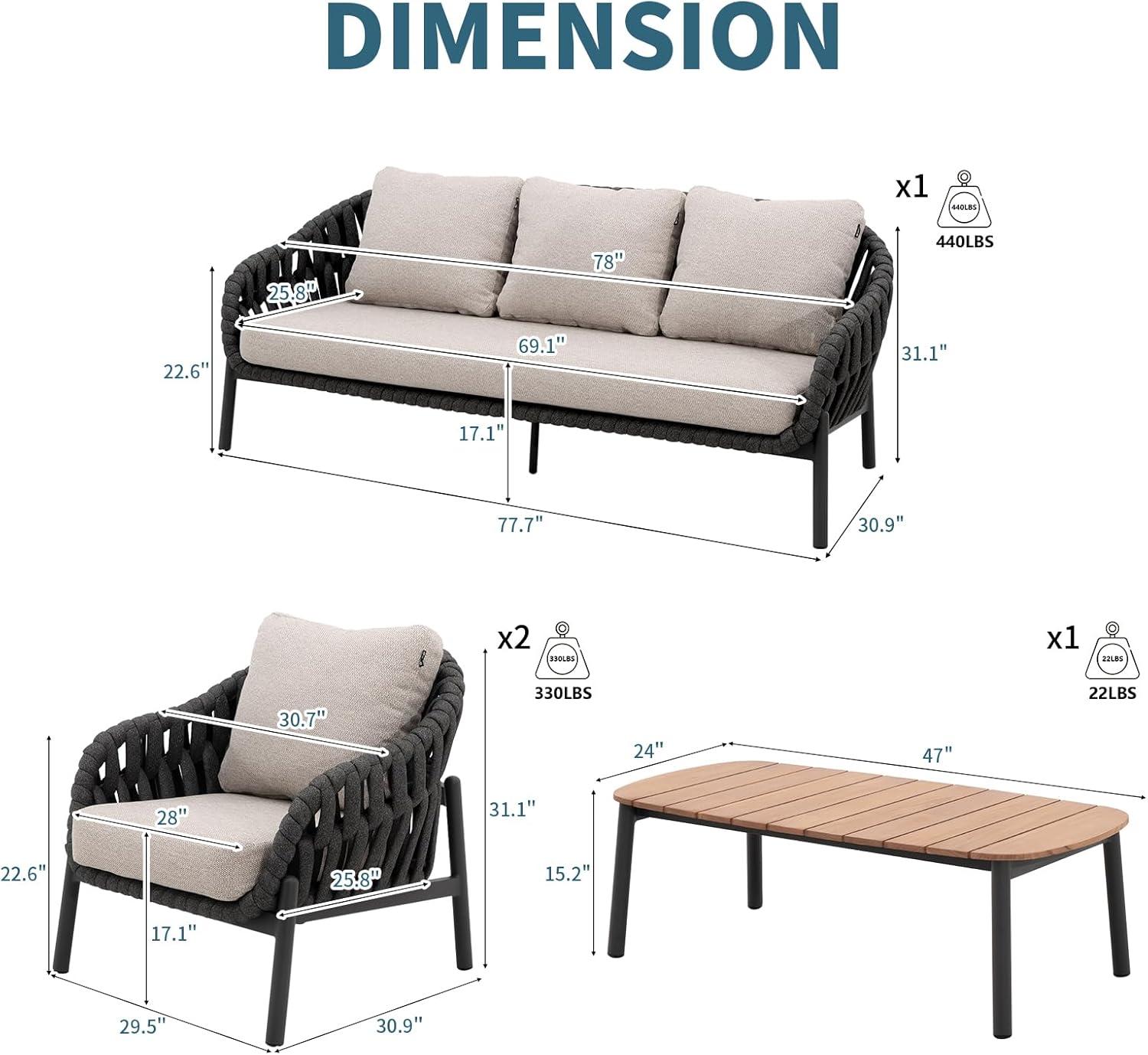 One of the standout features we appreciated was how effortless the setup turned out to be. The entire set arrived fully assembled,packed securely in one package,meaning we just needed to unpack and position the pieces in our preferred outdoor spot. This convenience saved us a ton of time and prevented the usual headaches that come with complex assembly. The weight of the aluminum frame made moving each piece manageable,while the quick-dry ropes gave the sofas a sturdy yet elegant feel. The coffee table, crafted with beautiful teak slabs, perfectly complemented the seating, adding that extra touch of refinement without any hassle.