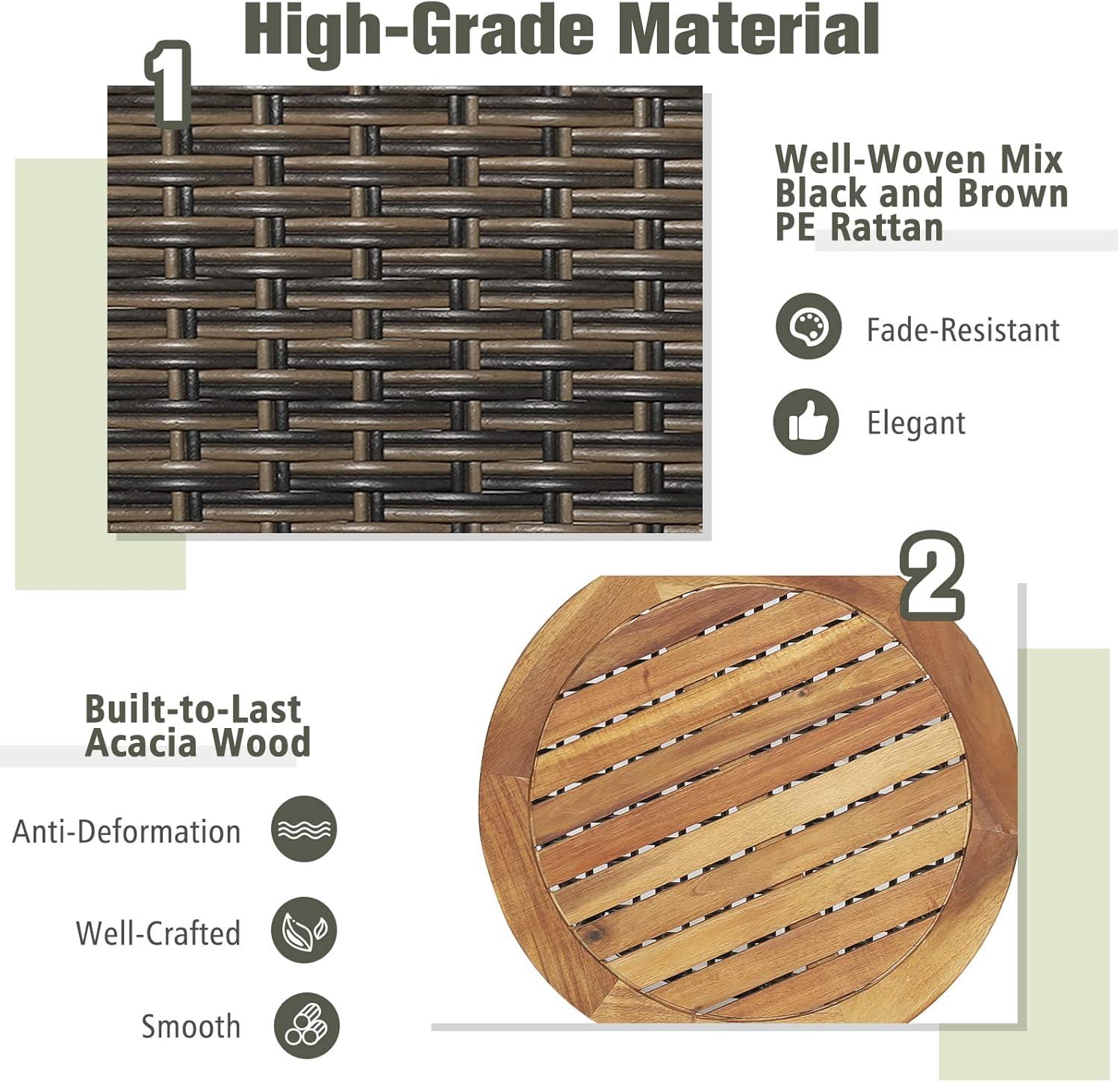 After spending ample time with this thoughtfully designed outdoor set, we can confidently say it blends comfort, durability, and style in one neat package. The cozy backrests paired with curved armrests and plush cushions make sitting a genuine pleasure, while the high-density sponge filling ensures lasting support.Maintenance is hassle-free thanks to removable cushion covers with smooth zippers, and the fixing straps smartly keep everything in place no matter how lively your get-togethers become. The steel frame wrapped in UV-resistant rattan offers exceptional sturdiness and weather resistance, making it a reliable companion for years to come. The dual-tier coffee table with a finely crafted acacia wood top stands out by providing both elegance and practical extra storage space-a perfect spot for drinks, snacks, or magazines.