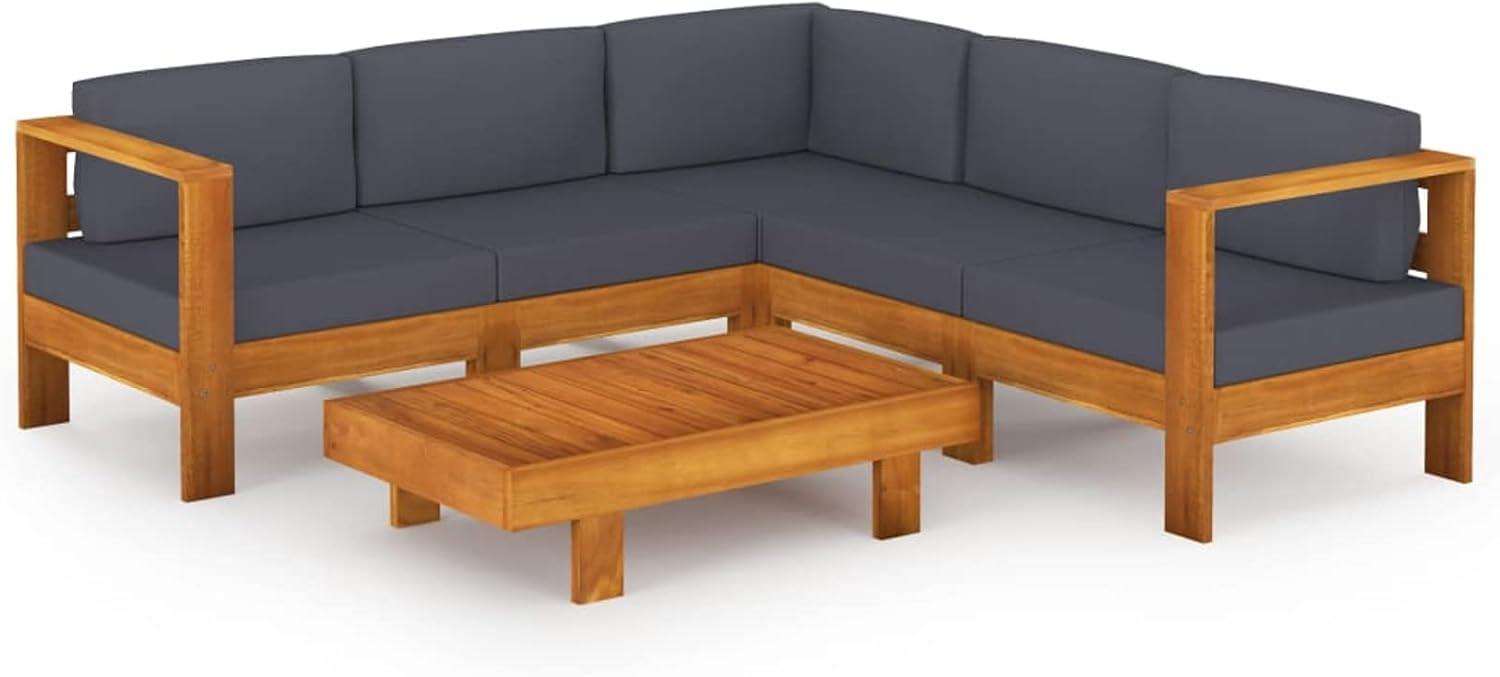 This six-piece ⁣outdoor lounge set is⁤ truly a gem when it comes to adapting to ​a variety​ of open-air environments. ⁣Whether we’re arranging a cozy conversation area on a balcony or ‍creating a stylish retreat poolside, the compact yet spacious design ensures we never compromise on comfort or style. The weather-resistant acacia wood frame paired with dark gray⁢ cushions withstands diverse climates, from sunny patios​ to breezy lawns, making it an all-season companion.