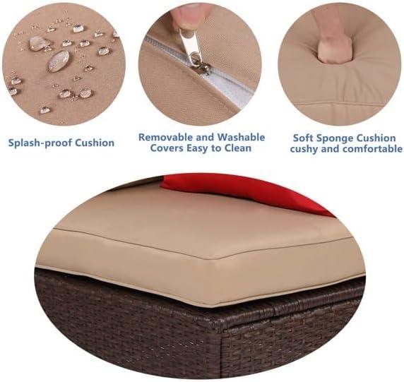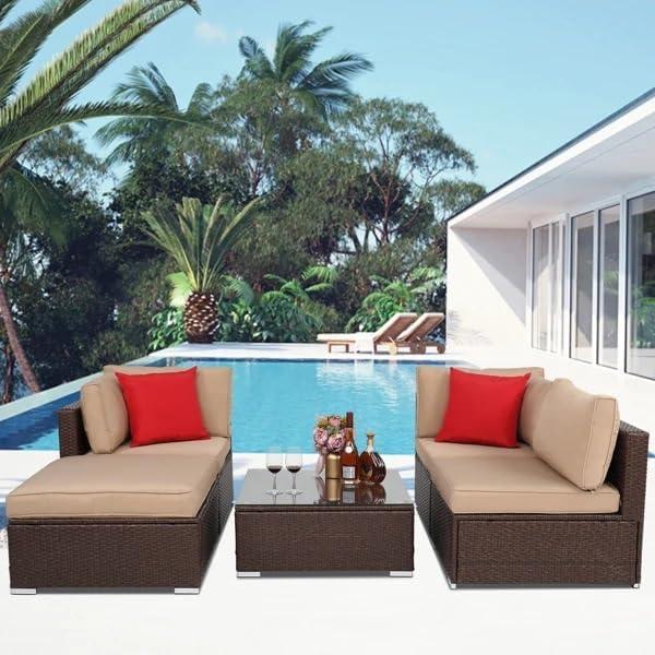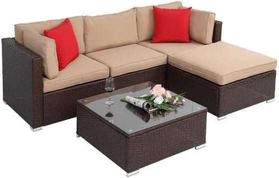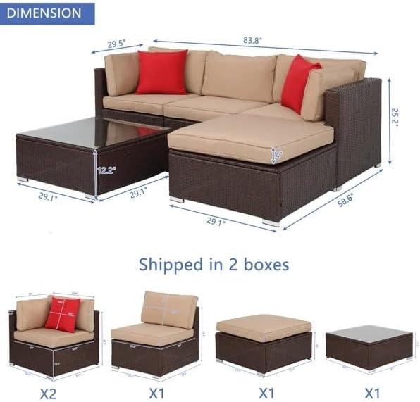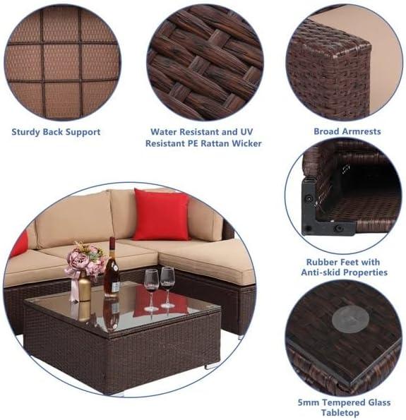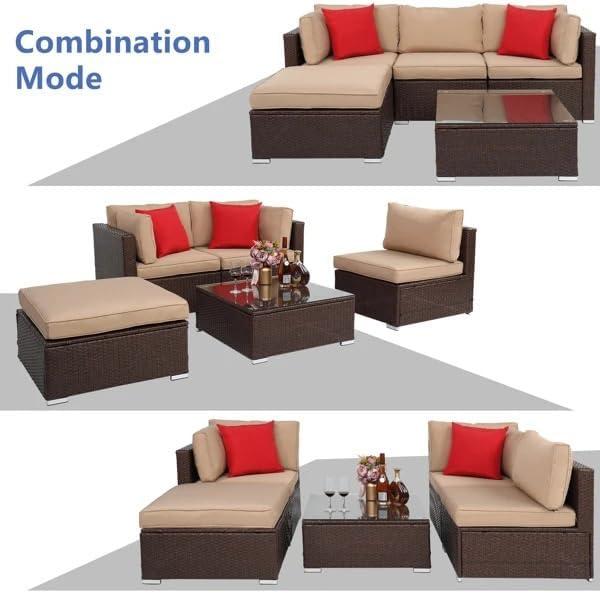 Upon unboxing this outdoor furniture ensemble, we immediately noticed the quality craftsmanship and thoughtful design. The blend of PE rattan wrapped over a sturdy plated steel frame offers a durable yet elegant look that fits seamlessly into our patio environment. The brown wood grain finish combined with beige cushions and red accent pillows created a cozy and inviting atmosphere. The cushions impressed us with their plushness-filled with thick sponge and cotton-making every seating moment truly comfortable. The water-resistant polyester covers add a practical touch, ensuring that our set withstands changing weather conditions without fading or deterioration.