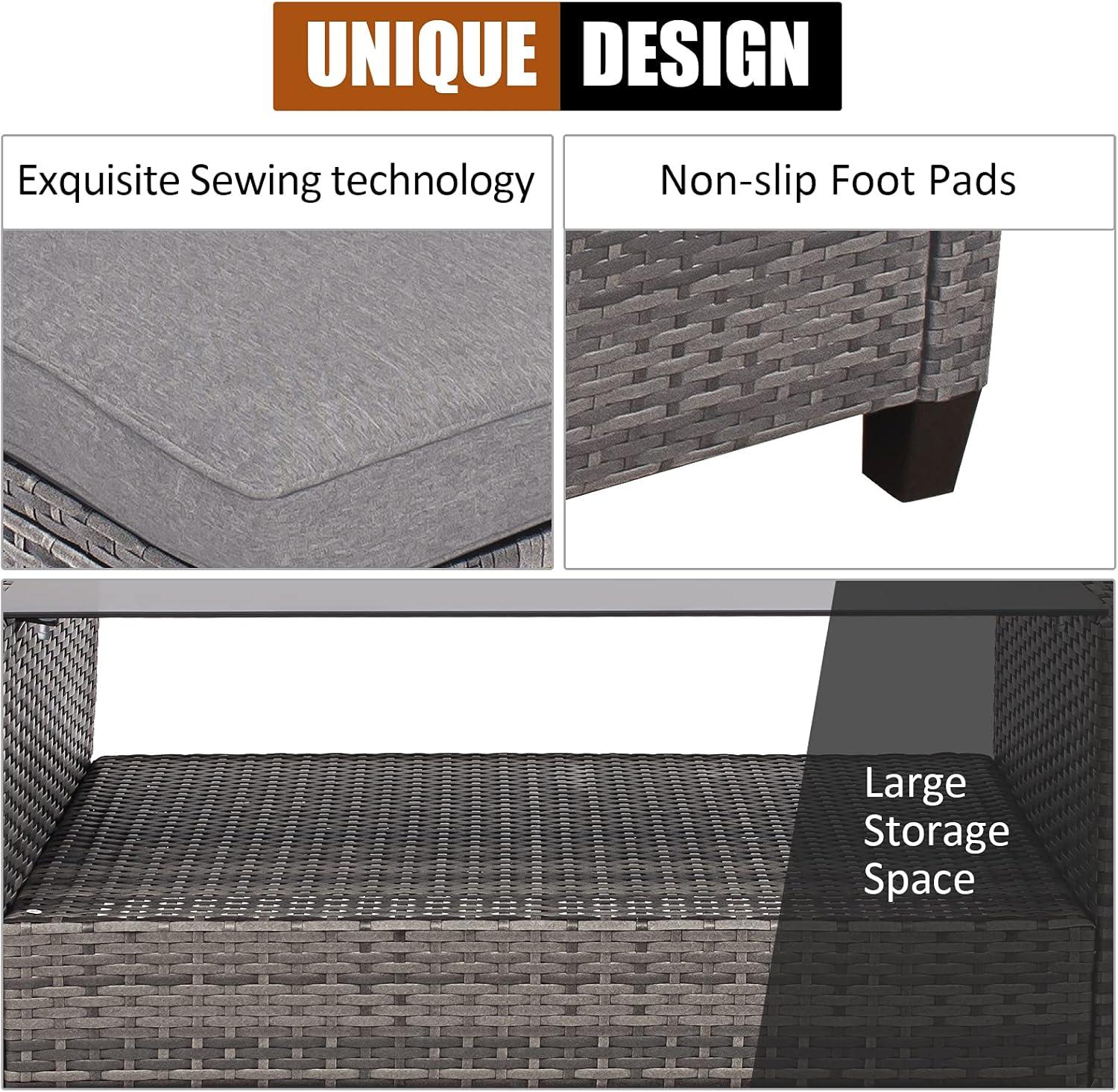 GarveeLife 3-Piece Patio Furniture Set, Outdoor All-Weather Wicker Furniture with Coffee Table, Patio Conversation Sets with Cushions for Balcony, Garden, Sunroom, Porch