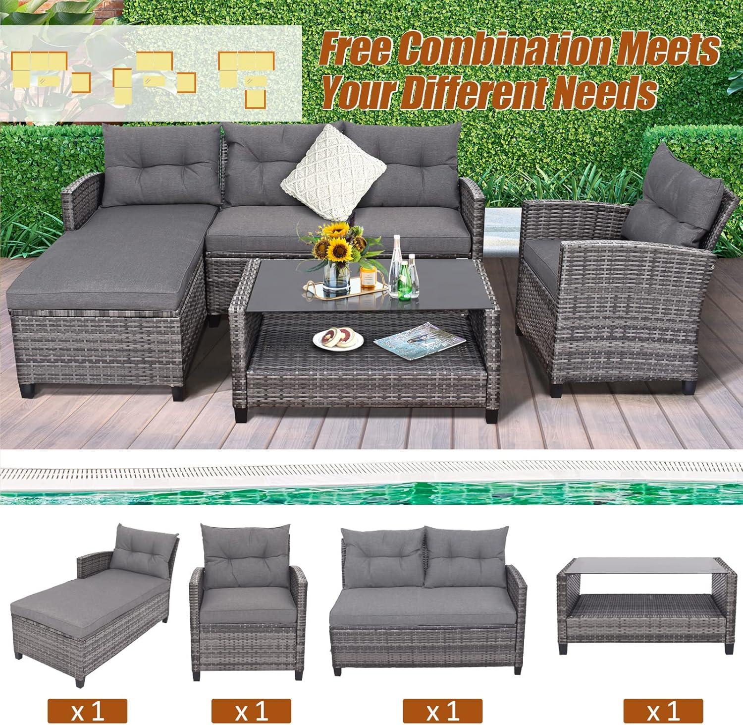 setting up this outdoor sectional was straightforward, thanks to the clear instructions included⁤ in the package. The sturdy⁣ steel frames and weather-resistant PE rattan parts arrived well protected, making assembly a smooth process with minimal effort. We started by arranging each​ individual piece-the loveseat, lounge chair, single sofa, and coffee table-to envision our desired layout. Thanks to the flexible ⁤design, we could combine or separate the components easily to fit our⁤ patio⁣ space perfectly. The ​adjustable feet were a thoughtful feature, allowing us to stabilize the furniture‌ on our slightly uneven backyard surface without scratching the floor.