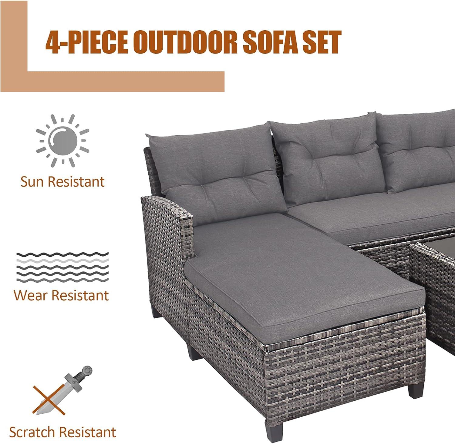 FDW | 4-Piece Patio Furniture Set | Black | Outdoor Wicker Furniture with Coffee Table | Modern Rattan Chairs Conversation Set | Outdoor Seating | Weather-Resistant | for Porch, Garden, Lawn