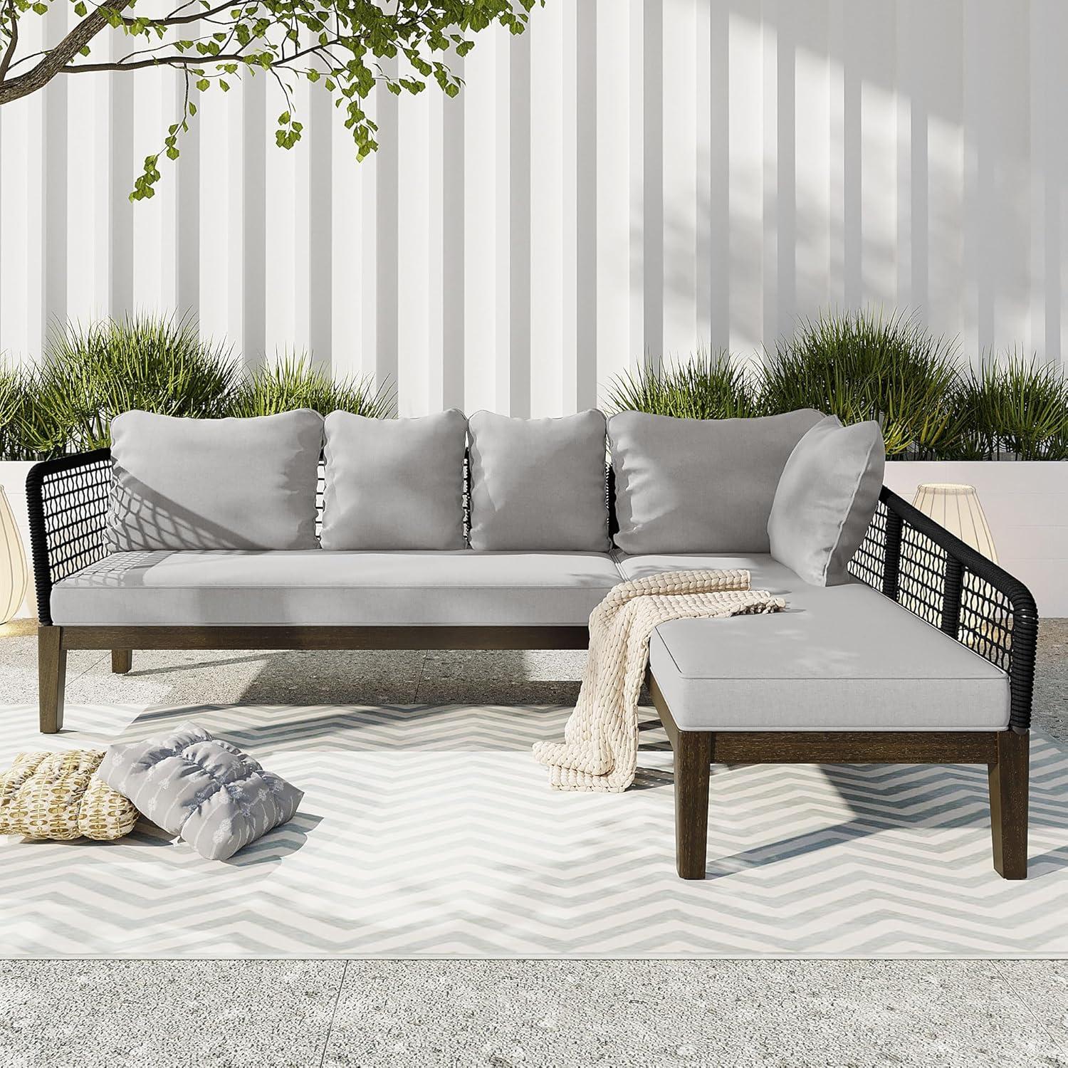 Patio Conversation Sets Modern 5-Person Outdoor Seating Group with Cushions Rope Waved⁢ Patio Sofa Set for Garden,Lawn,Poolside,L-Shaped,Black+Gray: Our First⁤ Impressions