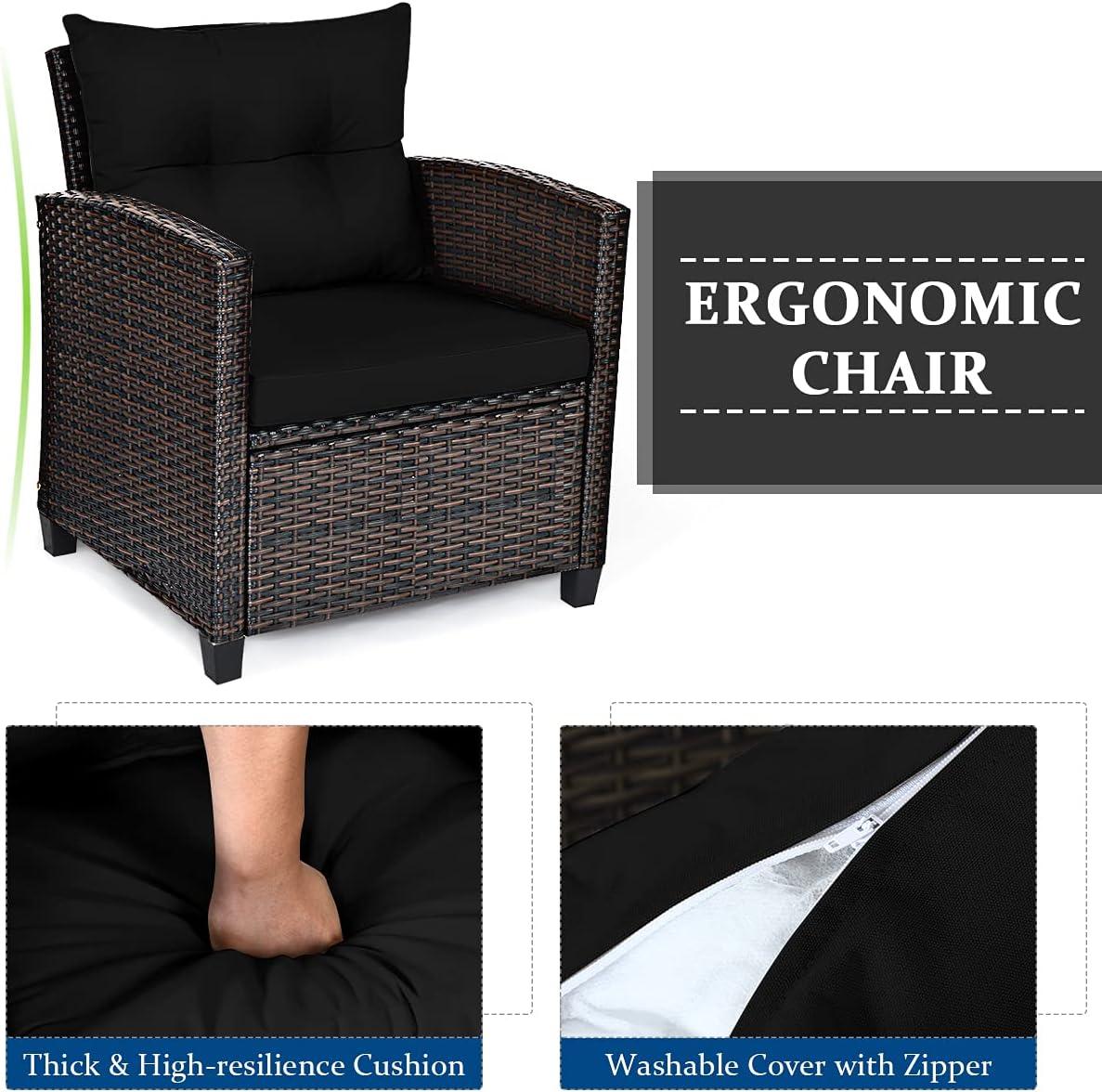 We were immediately impressed by the attractive blend of modern style and practical design in this 3-piece patio furniture set. The hand-woven PE rattan offers a robust outdoor solution, resisting moderate rain and wind while maintaining a lightweight feel that makes rearranging a breeze. The chairs feature ergonomic, slightly sloping backrests and wide armrests set at an ideal height, providing excellent support for relaxing after a busy day. plus, the thick cushions with removable, washable covers add a layer of cozy comfort that can easily adapt to changing weather – simply remove the cushions during hotter days to enjoy the breathable rattan beneath.