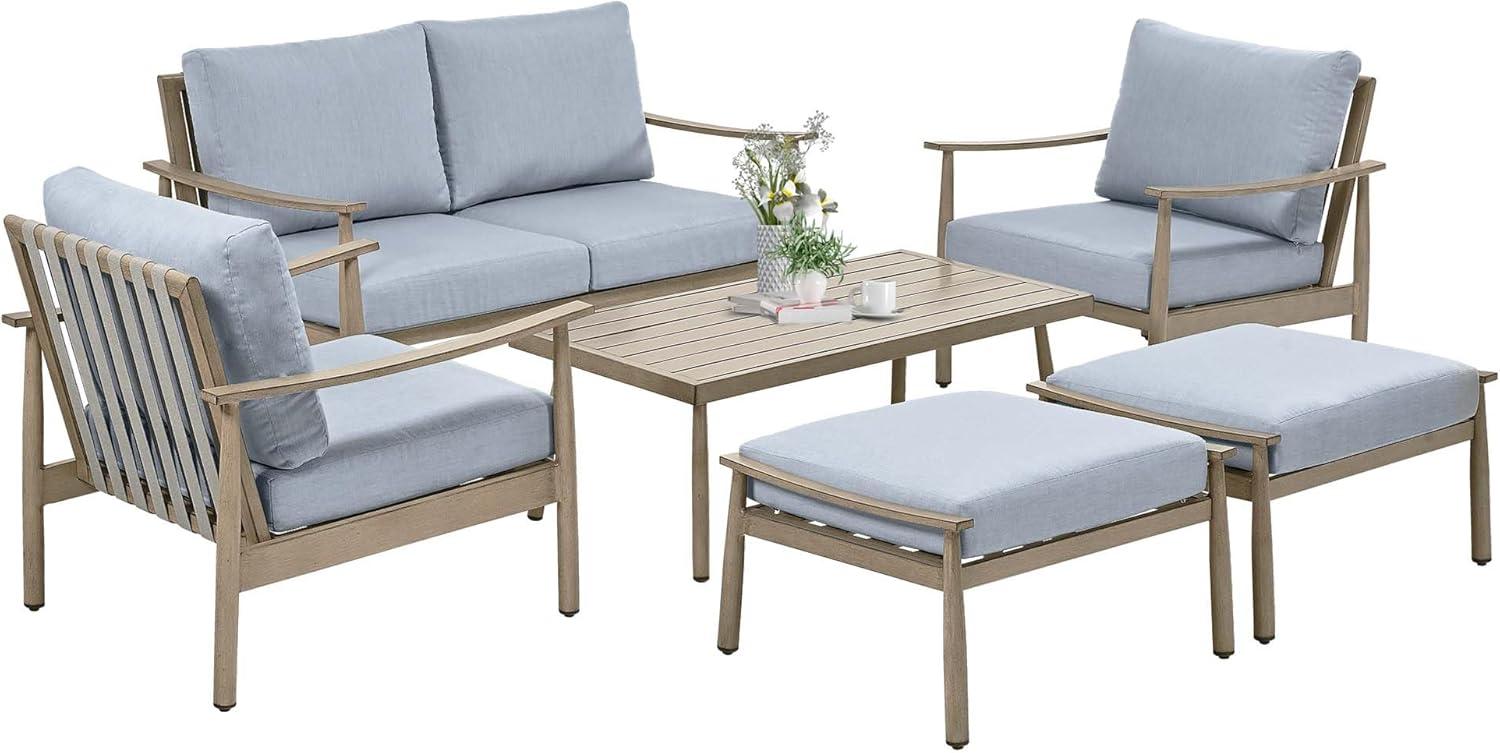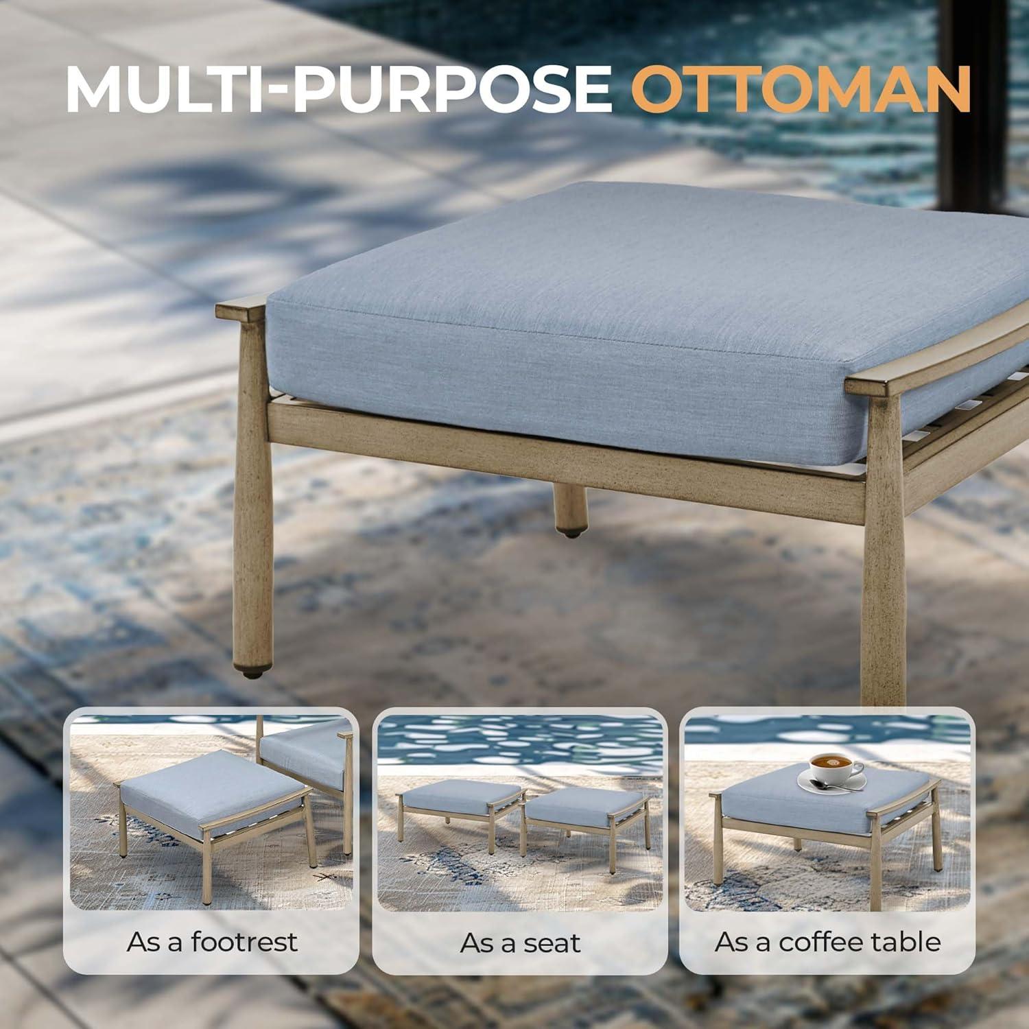 The inclusion of two ottomans that serve dual purposes-as extra seating or leg rests-alongside a generously-sized coffee table makes this package notably adaptable for both intimate gatherings and casual relaxation. To better illustrate, below is a quick comparison with two popular outdoor conversation sets: