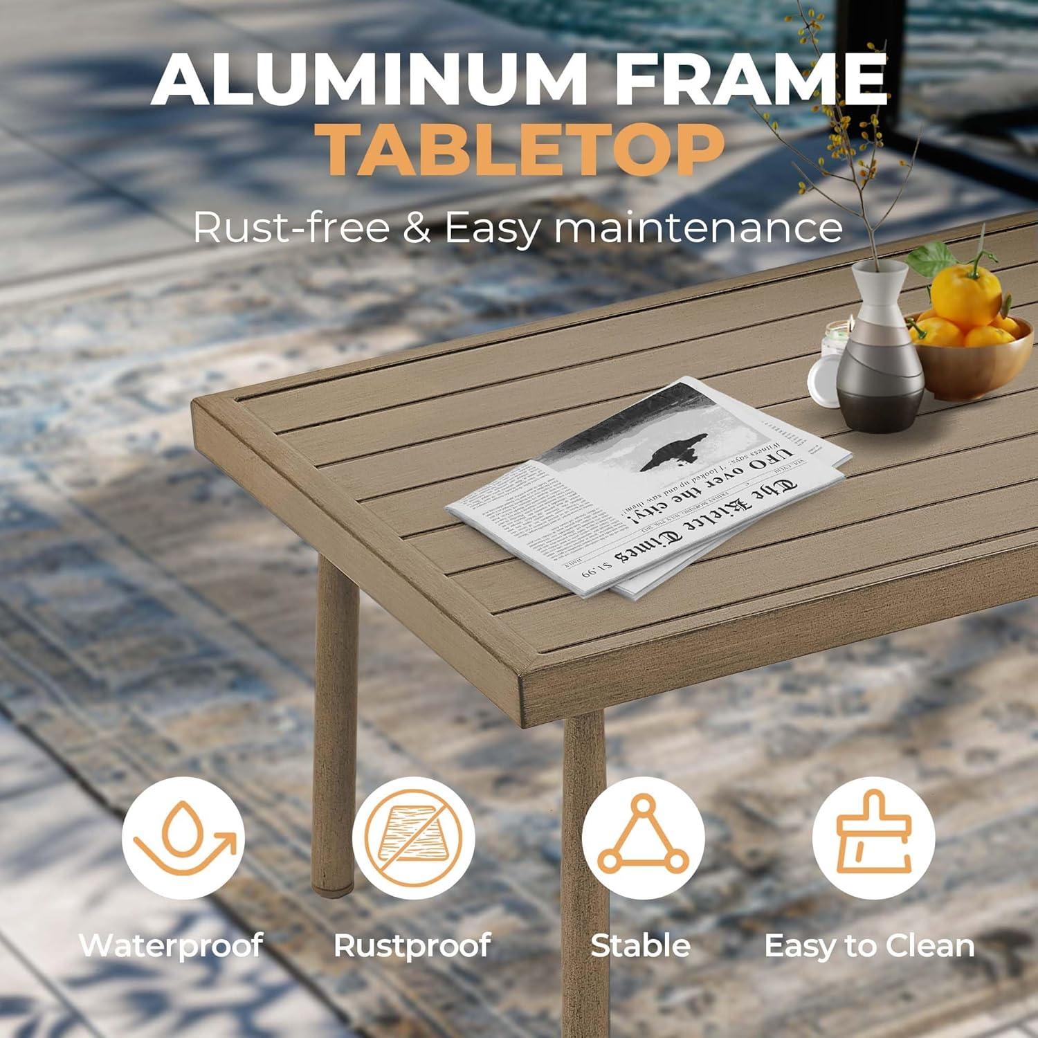 We found the set’s durable aluminum frame to be a standout feature, offering excellent resistance against rust, corrosion, and fading-perfect for unpredictable weather. The sleek powder-coated finish not only gives the furniture a modern appeal but also guarantees longevity with minimal maintenance. Adding to the comfort, the cushions are made from high-resilience foam wrapped in removable covers, enabling easy cleaning to keep everything fresh and inviting. Plus, the unique polyester woven rope backrests offer both elastic support and a stylish twist, blending form and function seamlessly in our yard and porch setups.