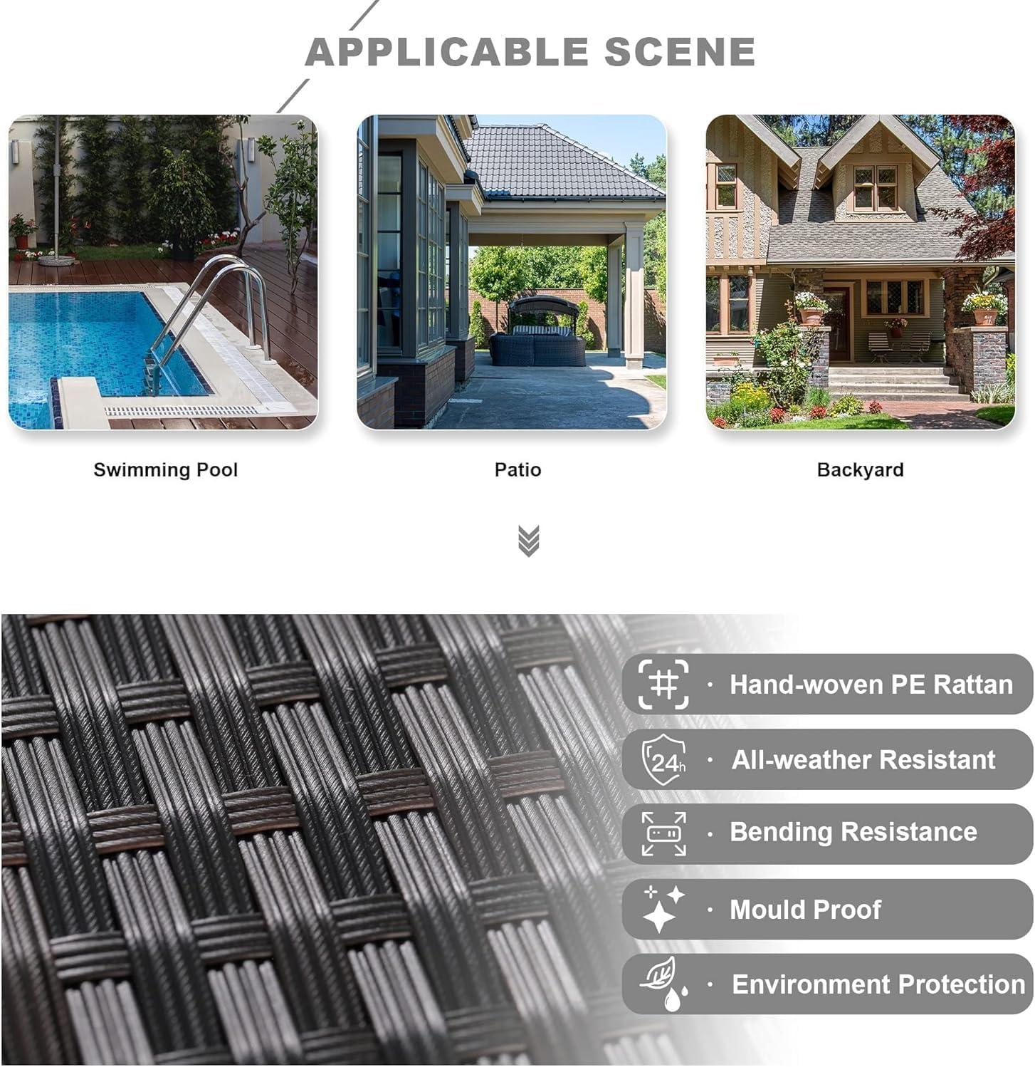 | Material | Weather-resistant PE rattan and stainless steel frame |