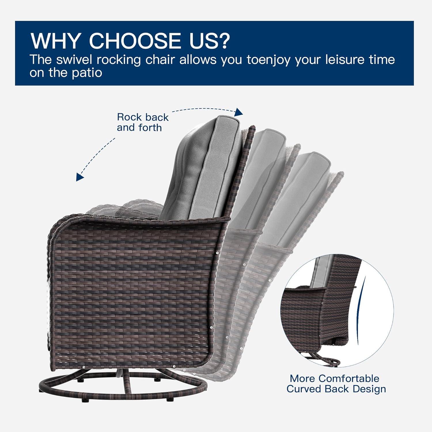 We believe this set is ideal for those who want to elevate their outdoor living area with versatility and convenience. Whether you frequently entertain guests or simply enjoy relaxing outside, the combination of rocking swivel chairs, cozy cushions, and a 55,000 BTU fire pit covers all bases for comfort and style. It’s also great for anyone looking for a relatively simple assembly experience backed by helpful customer support. Below is a quick summary to help you decide if this is the right fit for your outdoor needs: