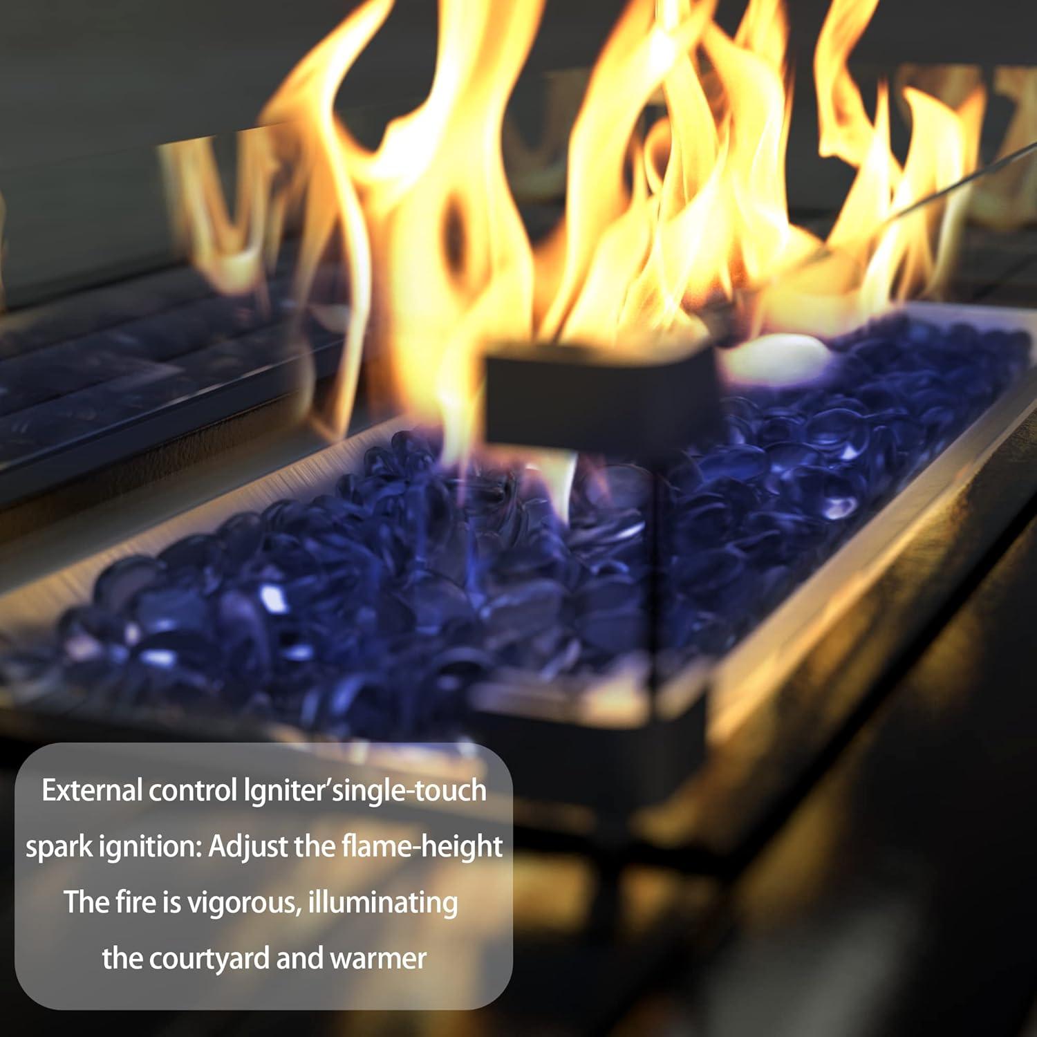 In daily use, the coffee table seamlessly combines functionality with elegant design, making it an indispensable part of our outdoor setup. Built with a widened tabletop that surrounds a centrally integrated propane fire pit, it effortlessly balances the roles of a cozy heat source and a convenient dining or serving surface. The auto-ignition fire pit, rated up to 55,000 BTU, heats up quickly with an easy push-button start and flame height control, providing warmth and ambiance during cooler evenings.Its sturdy tempered glass surface is both stylish and practical, allowing us to place drinks, snacks, or decorative items without worry.