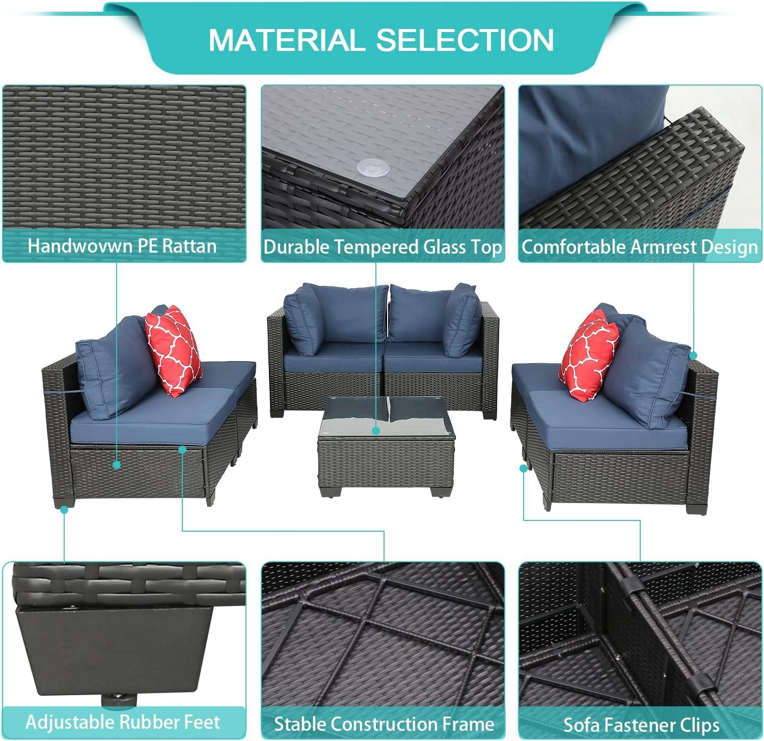 Patio Furniture Sets Outdoor Sectional PE Rattan Outdoor Furniture Patio Conversation Set with Cushions for Balcony Lawn and Garden (Expresso/Navy Blue, Set of 7)