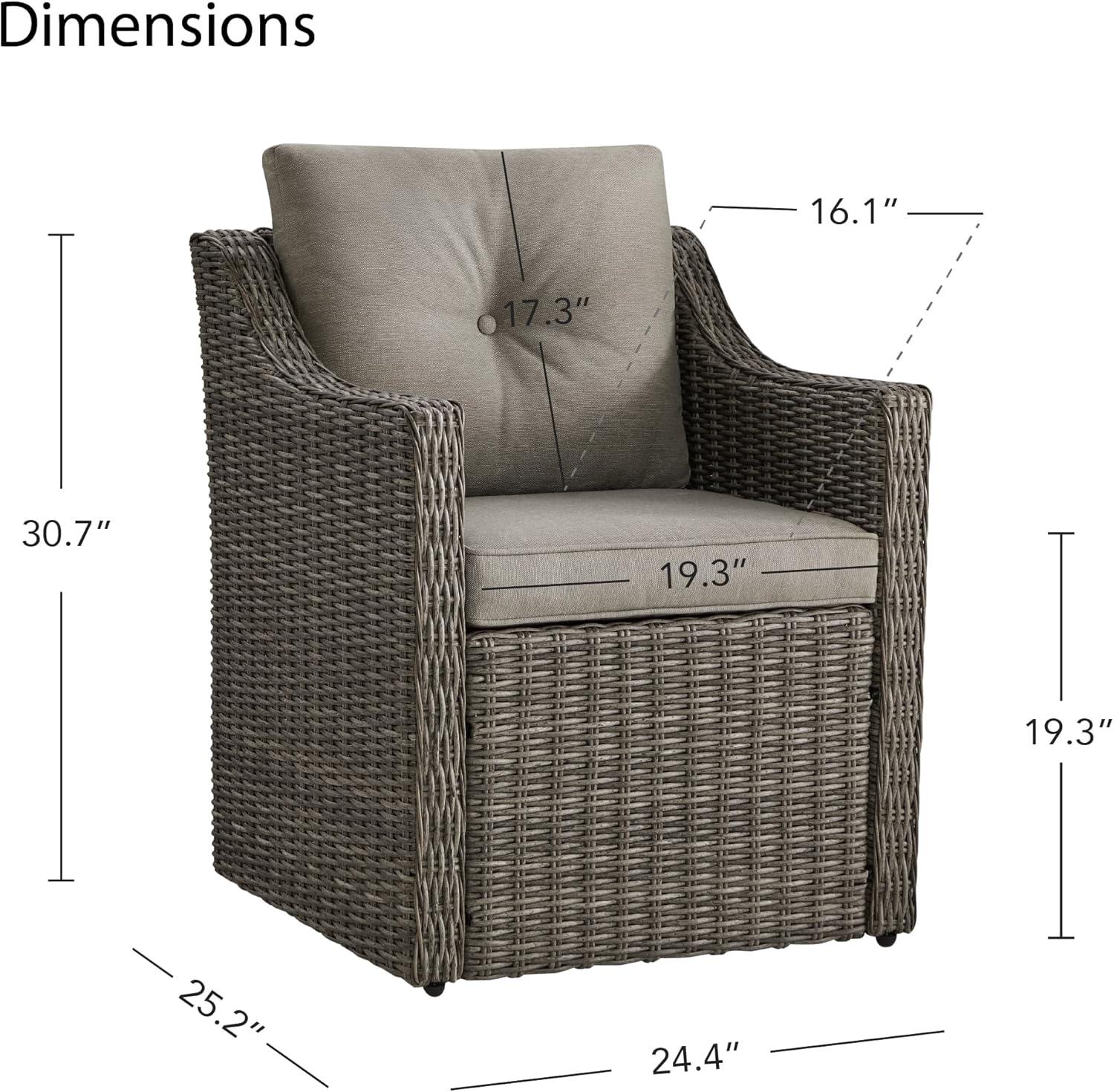 Transforming our backyard into a cozy, stylish retreat was effortless with these chairs. The brownish grey cushions paired beautifully with the cool, neutral tones of the grey wicker frame, creating a sophisticated yet inviting atmosphere. We loved how the handwoven rattan brought texture and visual interest without overwhelming the space. Their compact dimensions make them a perfect fit for both wide-open outdoor patios and snug garden corners. Plus, the luxurious cushions, with their 3.9-inch thickness and firm yet soft feel, provided just the right amount of comfort for long evening dinners and leisurely afternoons by the pool.