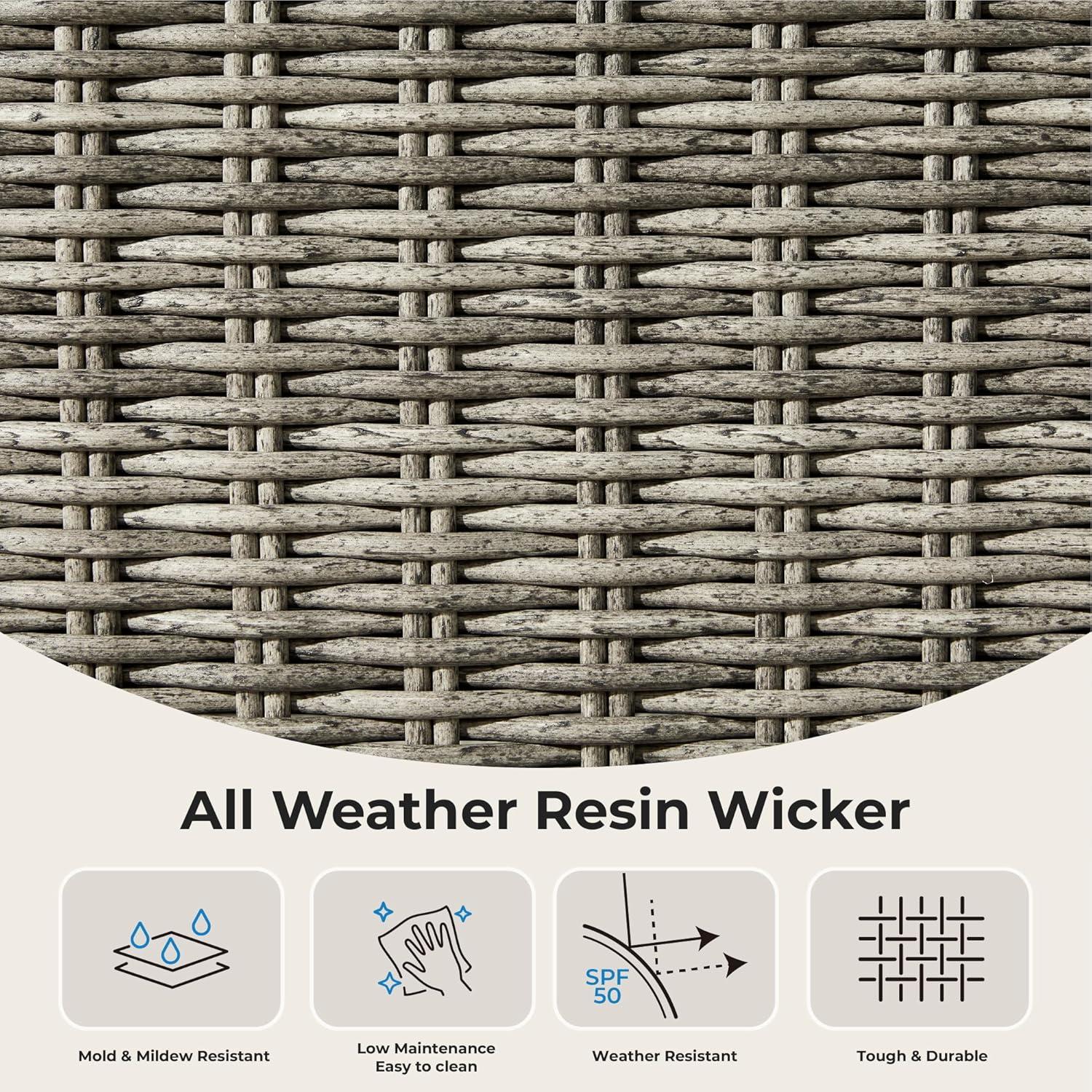 - Weatherproof synthetic rattan resists fading and cracking