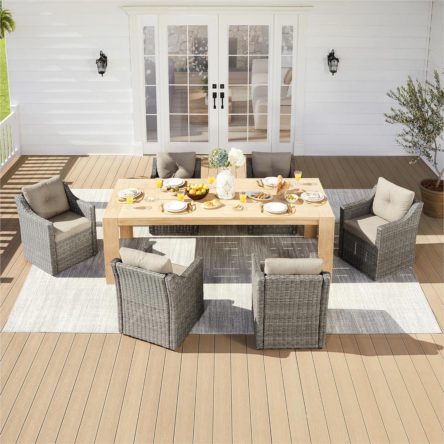 - 【7-Piece Dining Chair Set】This patio dining set contains 1 extended dining table and 6 ergonomic dining chairs. This modern outdoor dining table set features aesthetic appeal that seamlessly blends with various outdoor settings, adding charm and elegance to your patio or garden, which is perfect for your family events.