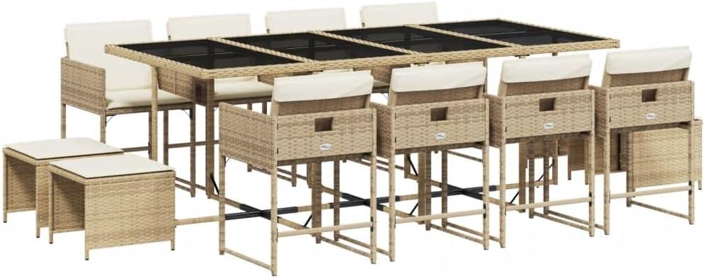 we recently had the chance to put the 13 Piece Patio Dining Set with Cushions Beige Poly rattan to the test in our backyard, and we’re excited to share our experience. This outdoor garden dining set caught our eye with its combination of style, functionality, and comfort. Crafted from durable PE rattan and paired with foldable chairs and thick, padded cushions, it promised a cozy yet practical solution for entertaining and relaxing outdoors.Over the past few weeks, we’ve enjoyed meals, gatherings, and quite afternoons on this set - here’s our full take on how it performs, feels, and fits into an outdoor living space.