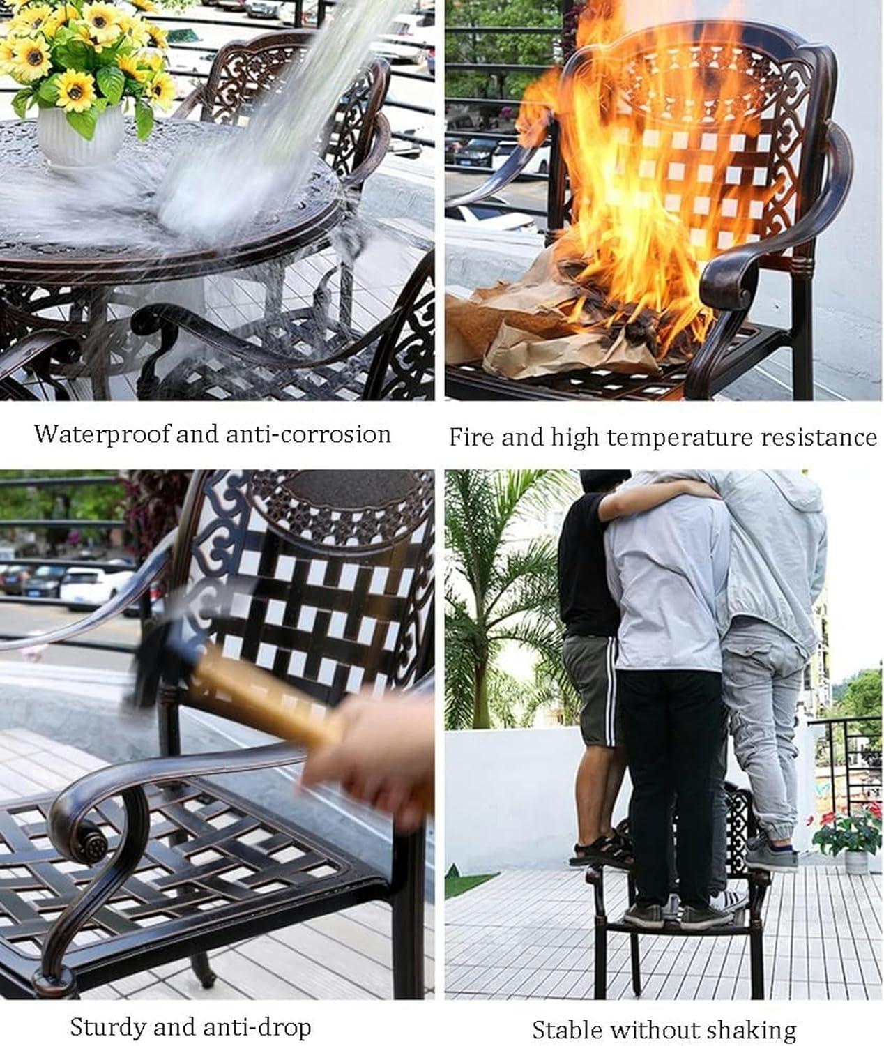 After spending time with this dining set,we can confidently say it strikes a fine balance between durability,comfort,and style. The cast aluminum construction ensures it withstands various weather conditions while remaining lightweight enough for easy rearrangement. The ergonomic design of the chairs,with their high backs and slightly reclining angle,provides excellent lumbar support,making long meals or casual lounging feel relaxing rather than tiring. Its waterproof and sun-resistant features meen minimal upkeep is required, and assembly takes no more than 20 minutes, which is a big plus for those who prefer hassle-free setup.
