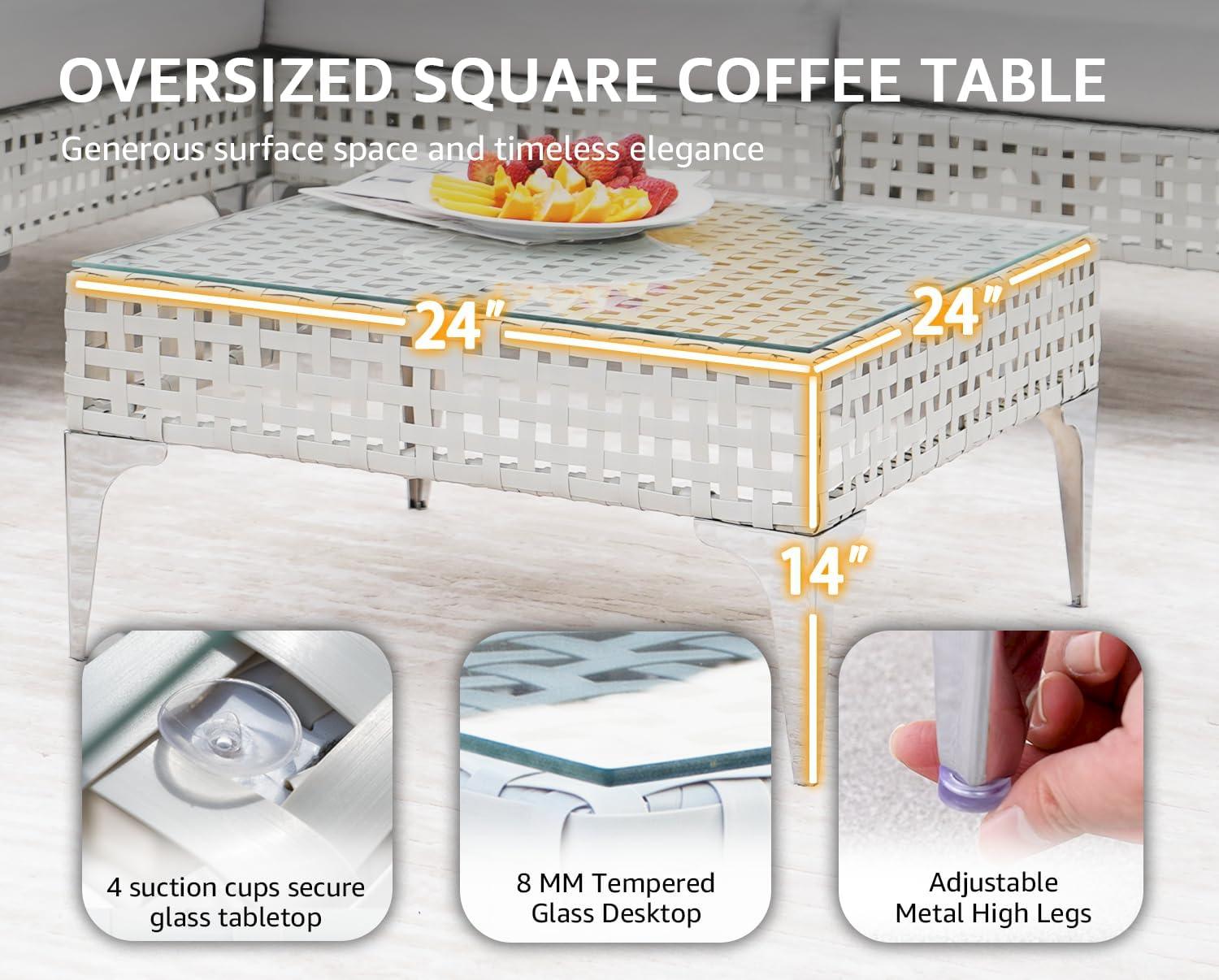Beyond style, the materials speak volumes about its quality and functionality. The robust 15mm powder-coated alloy steel frame supports up to 500 pounds per sofa piece, ensuring peace of mind for years to come. Cushions filled with 4-inch high-resilience sponge paired with soft PP cotton back cushions offer exceptional comfort and lumbar support, while the water-resistant and removable covers simplify maintenance. The included glass side table is crafted with tempered, 8mm-thick glass and rust-resistant metal legs, merging practicality with sleek elegance that resists scratches and weather impact alike.