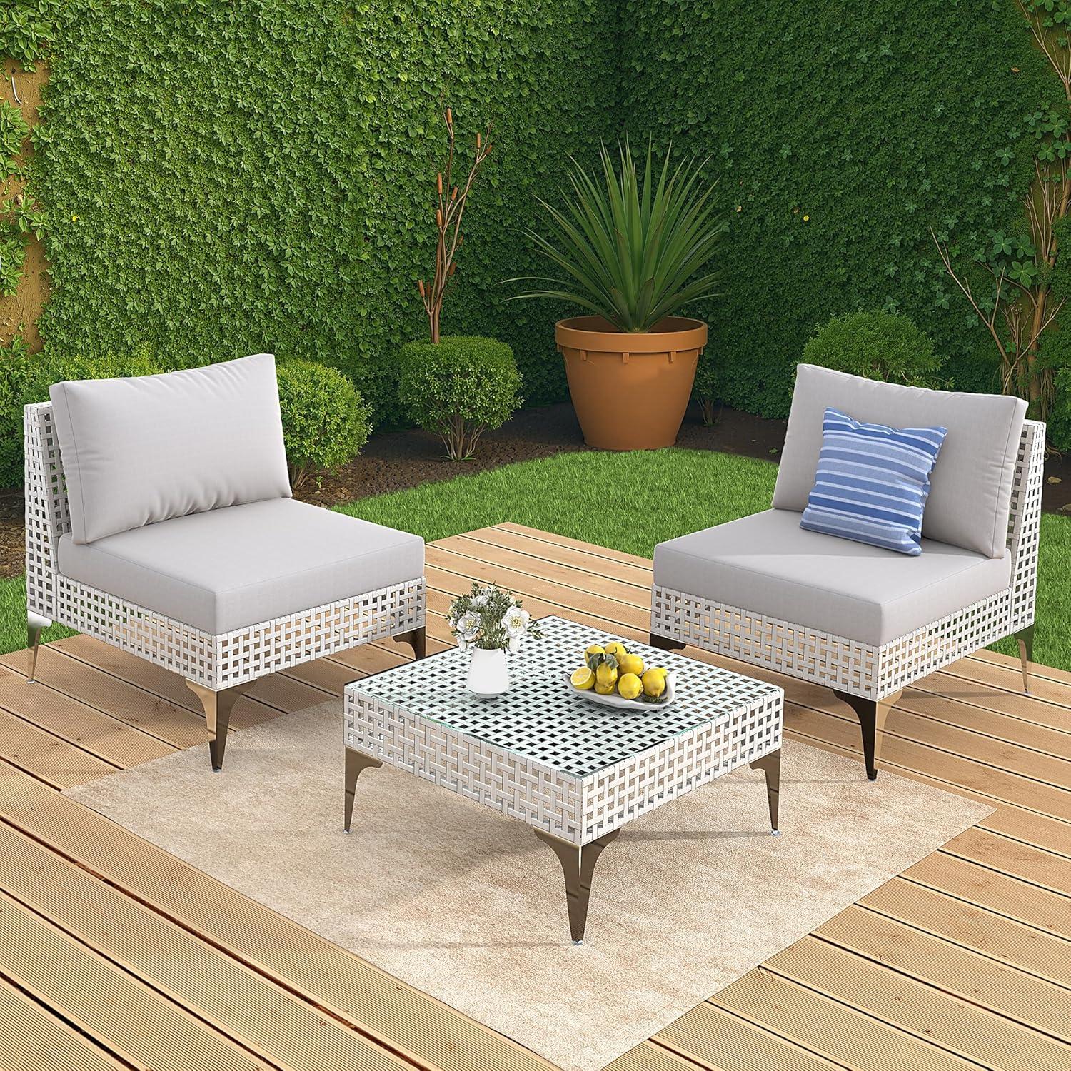Designed with compact outdoor spaces in mind, this set is an excellent choice for terraces, porches, or balconies where every inch counts. The two armless sofas provide ample seating without overwhelming tight corners, while the 25.6″ deep seats and 28.7″ high backs maximize comfort and support. We especially appreciate the 110° reclining backrest combined with soft PP cotton cushions, delivering superior lumbar support that lets us unwind without sacrificing space. The inclusion of hidden silicone anti-slip pads also means the pieces stay firmly in place on various surfaces, ensuring safety without bulky base structures.