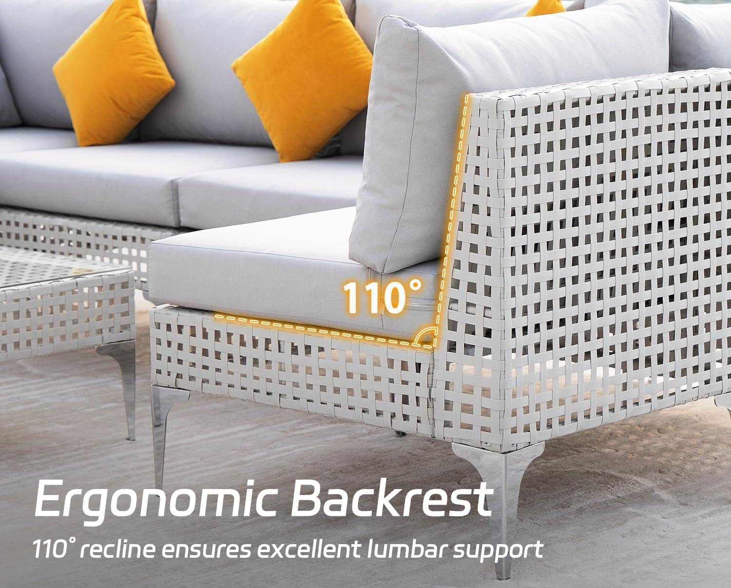 We’ve found this outdoor set impressively durable, thanks to its robust construction materials. the frame is built with 15mm-thick powder-coated alloy steel, providing a strong foundation that can handle up to 500 pounds per sofa component. Wrapped in weather-resistant PE rattan that’s 20mm wide, the weave effectively shields the frame from environmental stressors. Stainless steel legs, tested for over 50,000 abrasion cycles, resist rust and scratches, giving the set longevity even in harsher outdoor climates. The cleverly hidden silicone anti-slip pads add stability on uneven grounds, which is a great bonus for any outdoor space.