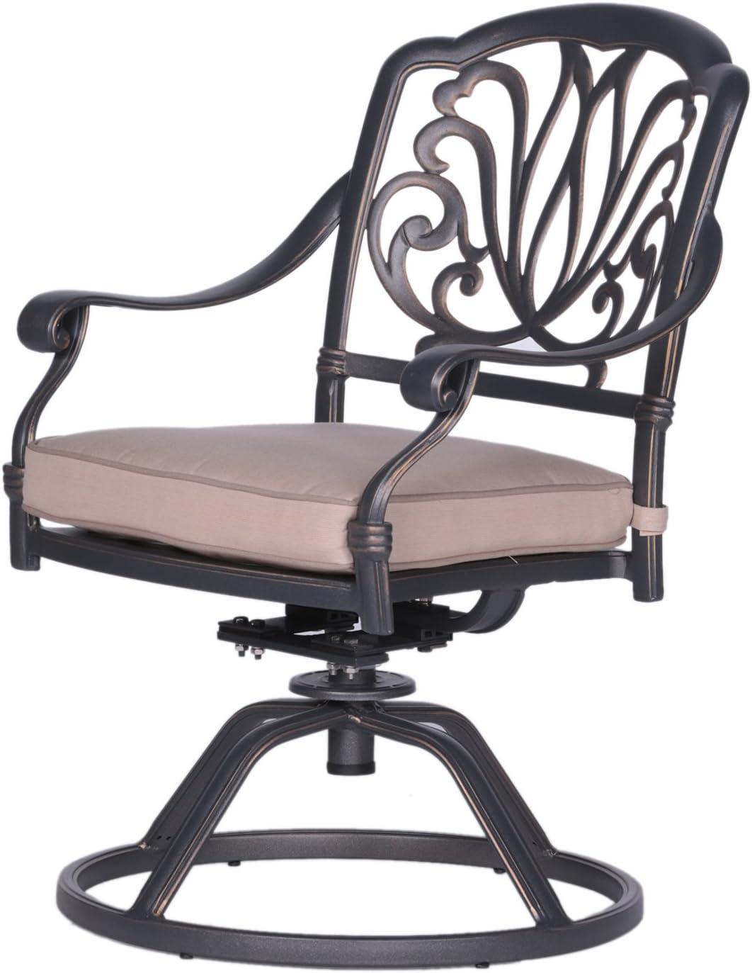 You’ll notice the difference between the “stored” and “in-use” footprints quickly. While exact numbers change as people swivel, rock or nudge cushions into place, the practical space the set occupies tends to fall into two bands — a smaller one for when chairs are tucked and a larger one when they’re pulled out for seating. The chairs’ ability to swivel and rock means they need a bit of lateral room when occupants turn, so neighbouring chairs sometimes shift a few inches apart as people settle in.
