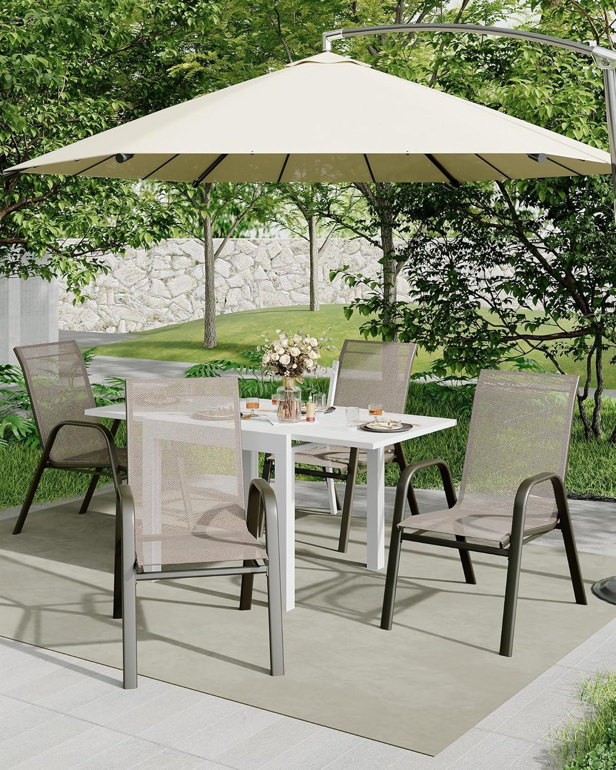 After spending time with these outdoor chairs, we appreciate how their stackable design offers excellent space efficiency, making them a smart choice for those with limited patio or deck areas. The combination of a metal frame and breathable Textilene fabric creates a balanced mix of durability and comfort.These chairs handle seasonal weather challenges well, thanks to the rust-resistant construction, and their sleek brown finish brings a modern, stylish touch to any outdoor setting. Assembly is straightforward if instructions are followed carefully, ensuring the chairs remain stable and safe for everyday use.