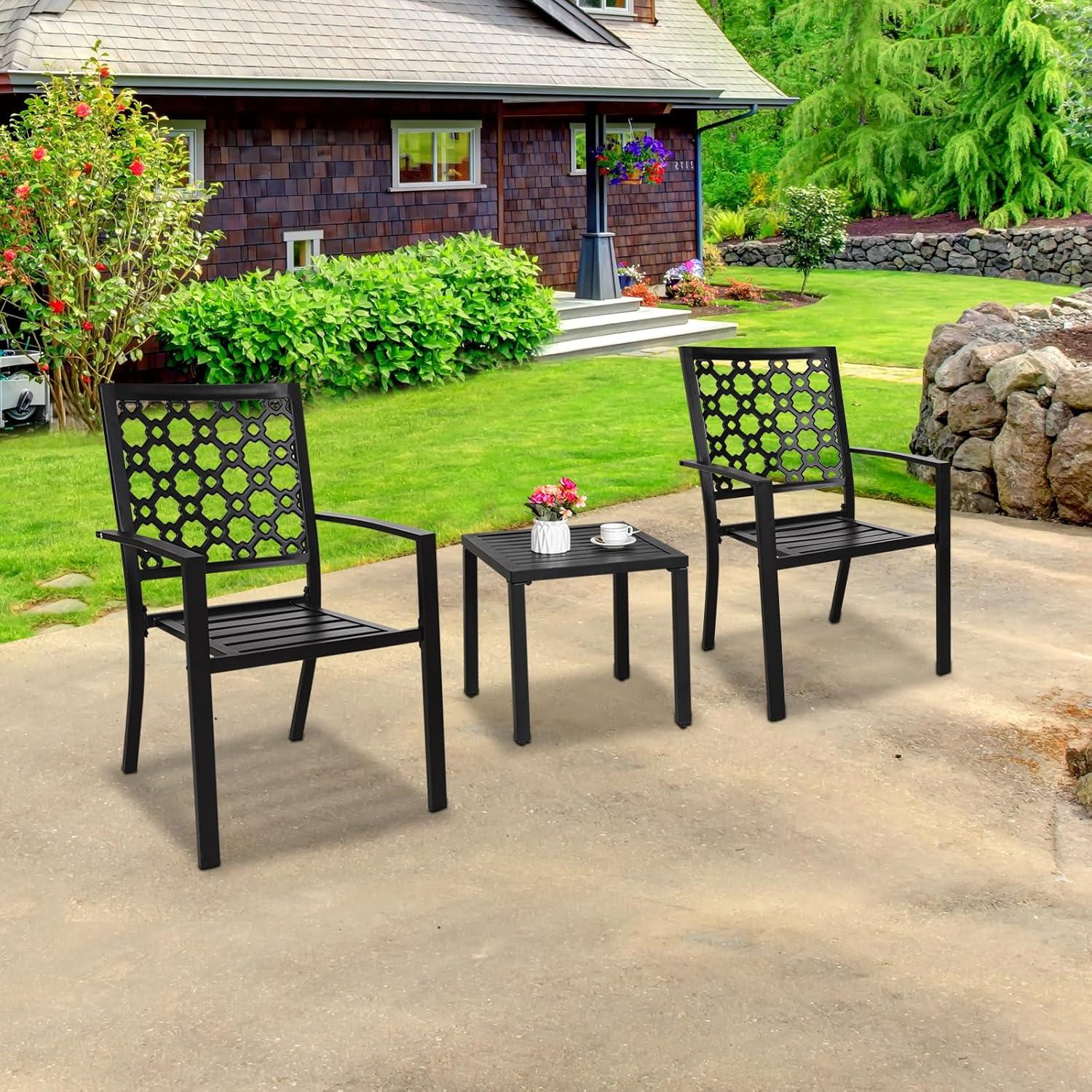 This set is perfectly suited for individuals or couples living in apartments, condos, or homes with limited outdoor space such as balconies, small patios, or gardens. Its stackable chairs save space when not in use, and the ergonomic armrests support long, relaxing afternoons outdoors. It supports up to 250 lbs per chair, making it reliable for daily use.Whether you want a quiet spot for morning coffee or a casual dining area for two, this set delivers practical comfort and enduring style.