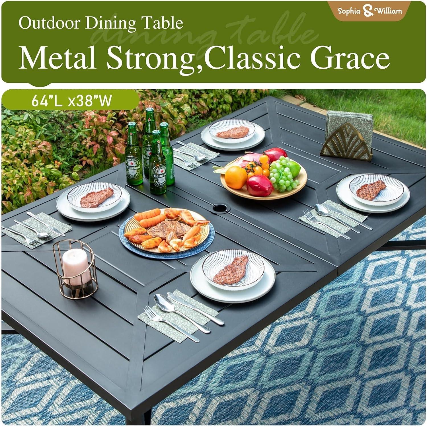 Beyond just convenience, the umbrella hole’s strategic placement at the center of the spacious 64″ x 39″ table ensures the umbrella pole stays stable and balanced, even during breezy days. This means we can relax without worrying about sudden shifts. Pairing this with the highly durable, weather-resistant metal frame means the entire setup withstands the elements, offering an all-weather pleasant outdoor space for us to unwind or entertain.
