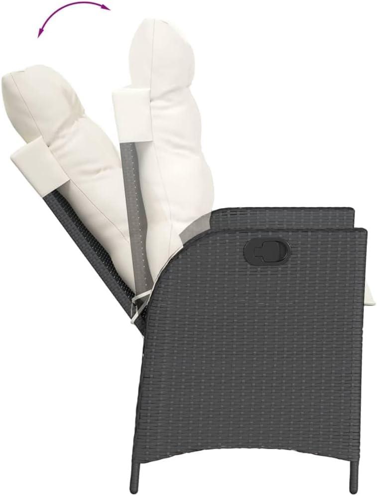 The sleek black rattan construction not only brings a modern aesthetic to our outdoor space but is thoughtfully designed to enhance comfort and functionality. Each cushioned reclining chair invites us to relax fully, with adjustable backrests allowing for a tailored seating experience whether we’re enjoying a casual meal or unwinding with a drink. The plush cushions add softness without sacrificing support, and their removable covers make maintenance hassle-free, keeping the set looking fresh and inviting through all seasons.