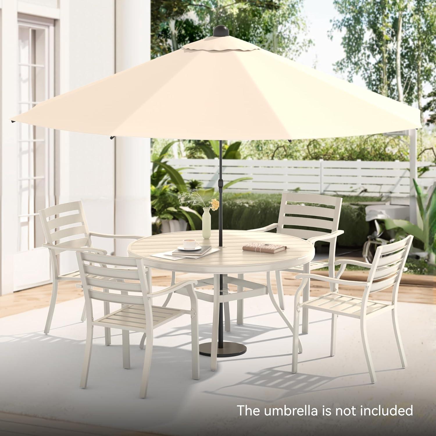 This outdoor dining set strikes a perfect balance between style and practicality, making it a solid choice for anyone looking to enhance their outdoor living space. Its durable metal construction and sandstone finish promise long-lasting resistance to weather, while the stackable chairs help save precious space when not in use. Whether you have a cozy balcony, a spacious backyard, or a wooden deck, this set offers versatile, minimalist appeal that complements various settings. Plus, the quick assembly process lets us enjoy it almost immediately, perfect for those eager to start hosting BBQs or casual dinners under the stars without hassle.