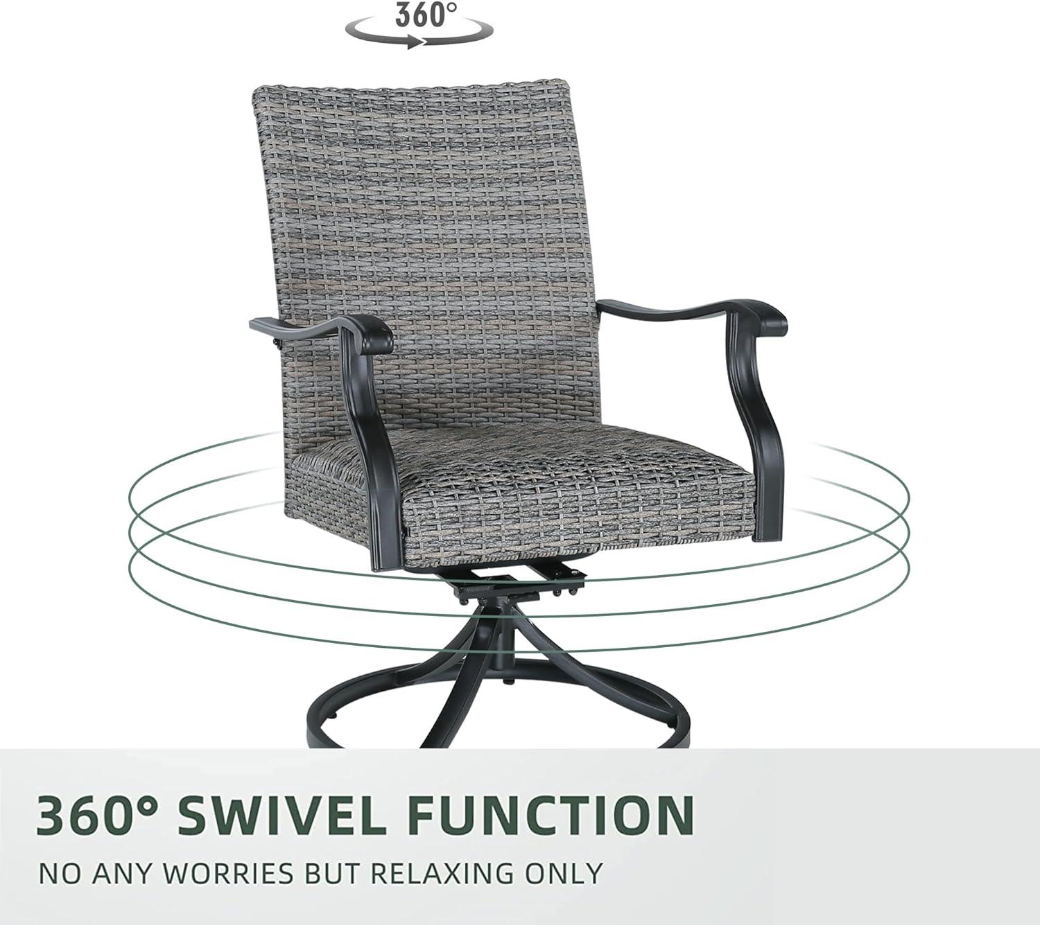 Functionality is clearly a priority with this set, as everything from the handwoven PE rattan to the sturdy steel frame has been crafted to withstand the elements while keeping maintenance simple. The chairs swivel smoothly, enhancing ease of use during gatherings, and the weather-resistant materials allow us to leave the furniture outside without worry. Assembly was straightforward with all necessary hardware included, making setup quick and hassle-free. Below is an overview of the key features that support our everyday use: