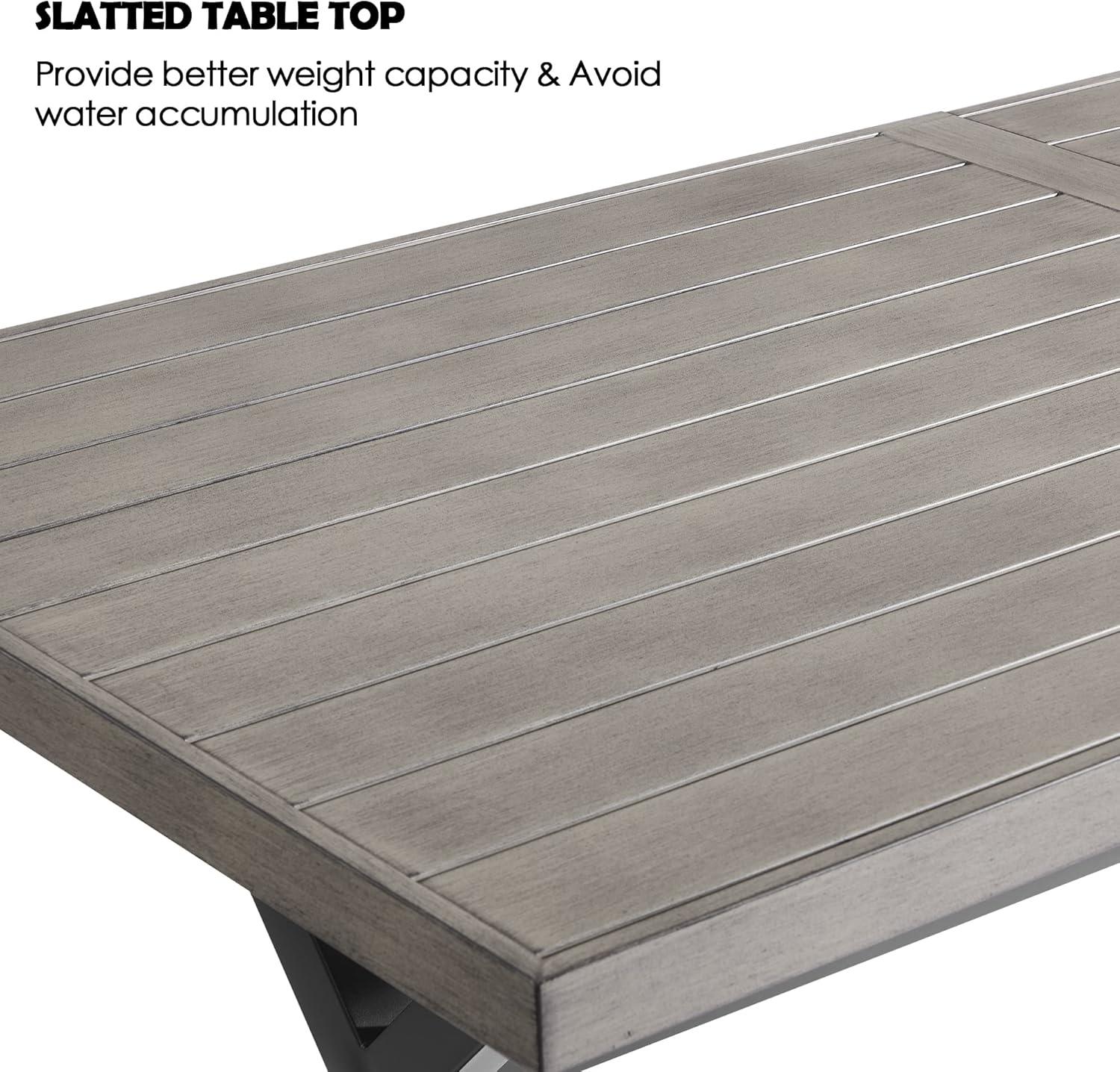 - 【7-Piece Dining Chair Set】This patio dining set contains 1 extended dining table and 6 ergonomic dining chairs. This modern outdoor dining table set features aesthetic appeal that seamlessly blends with various outdoor settings, adding charm and elegance to your patio or garden, which is perfect for your family events.