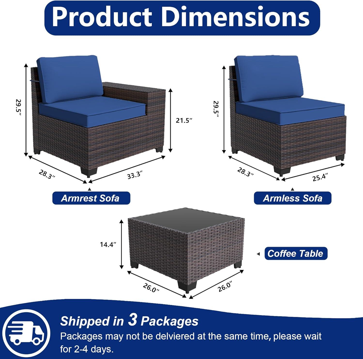 Keeping our setup sleek and organized is easy thanks to the well-thought-out design. The cushions are removable and washable, simplifying upkeep, while the table’s tempered glass surface wipes clean effortlessly after meals or drinks. The rust-resistant steel frame and tightly woven PE rattan blend durability with lightweight convenience, making rearranging or storing sections hassle-free when seasonal changes call for it. this set creates a cozy and inviting atmosphere where every piece fits harmoniously to maximize both comfort and style.
