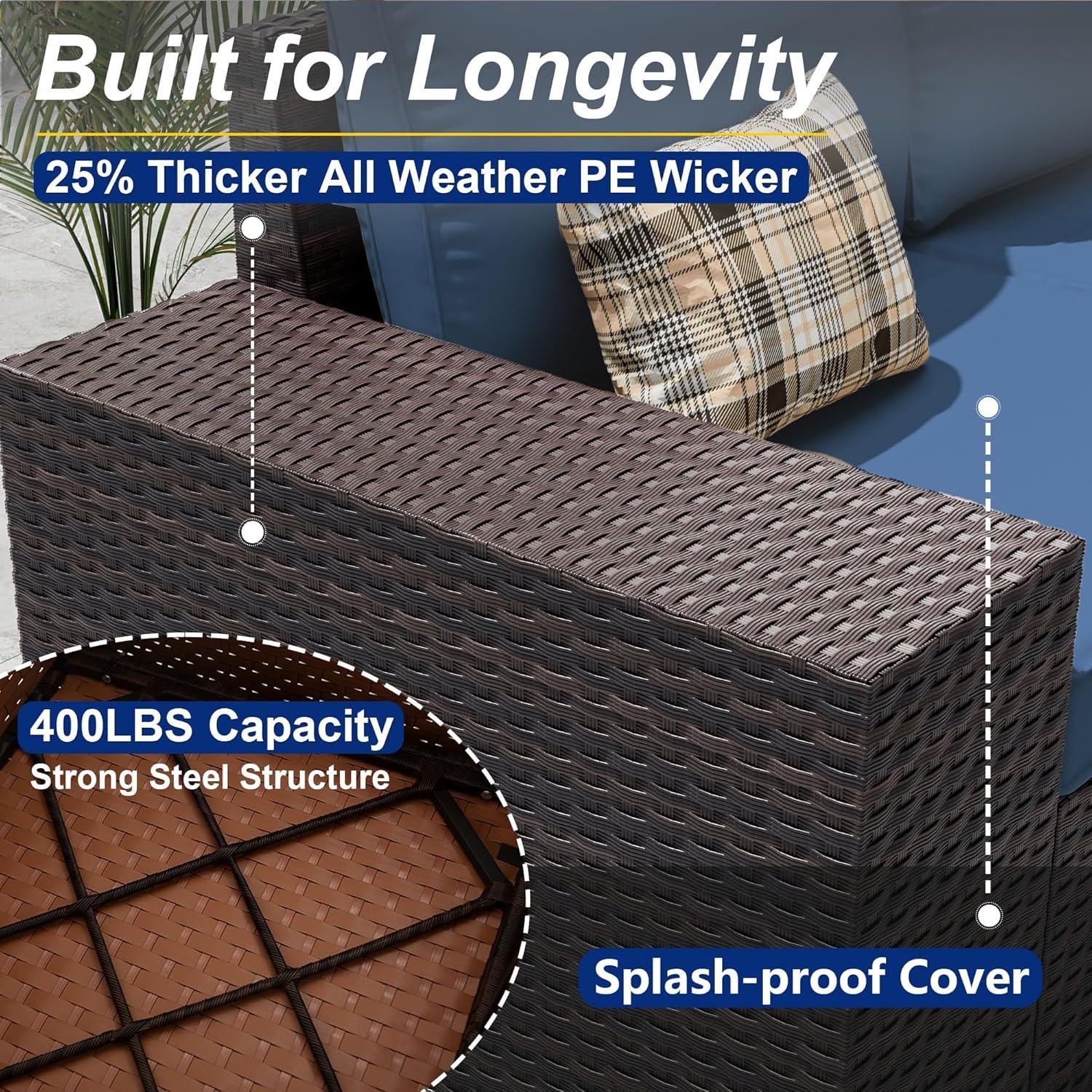 After spending time with this outdoor sectional, we appreciate its thoughtfully crafted design that blends both comfort and durability. The combination of a rust-resistant steel frame and handwoven PE rattan ensures the set will withstand various weather conditions, while the high-density rebound cushions add a welcoming softness that makes lounging a true pleasure.The modular design lets us rearrange the pieces effortlessly, adapting the layout to suit different occasions-be it an intimate chat or a lively gathering. Plus, the removable, washable cushion covers simplify maintenance, keeping the set looking fresh season after season.