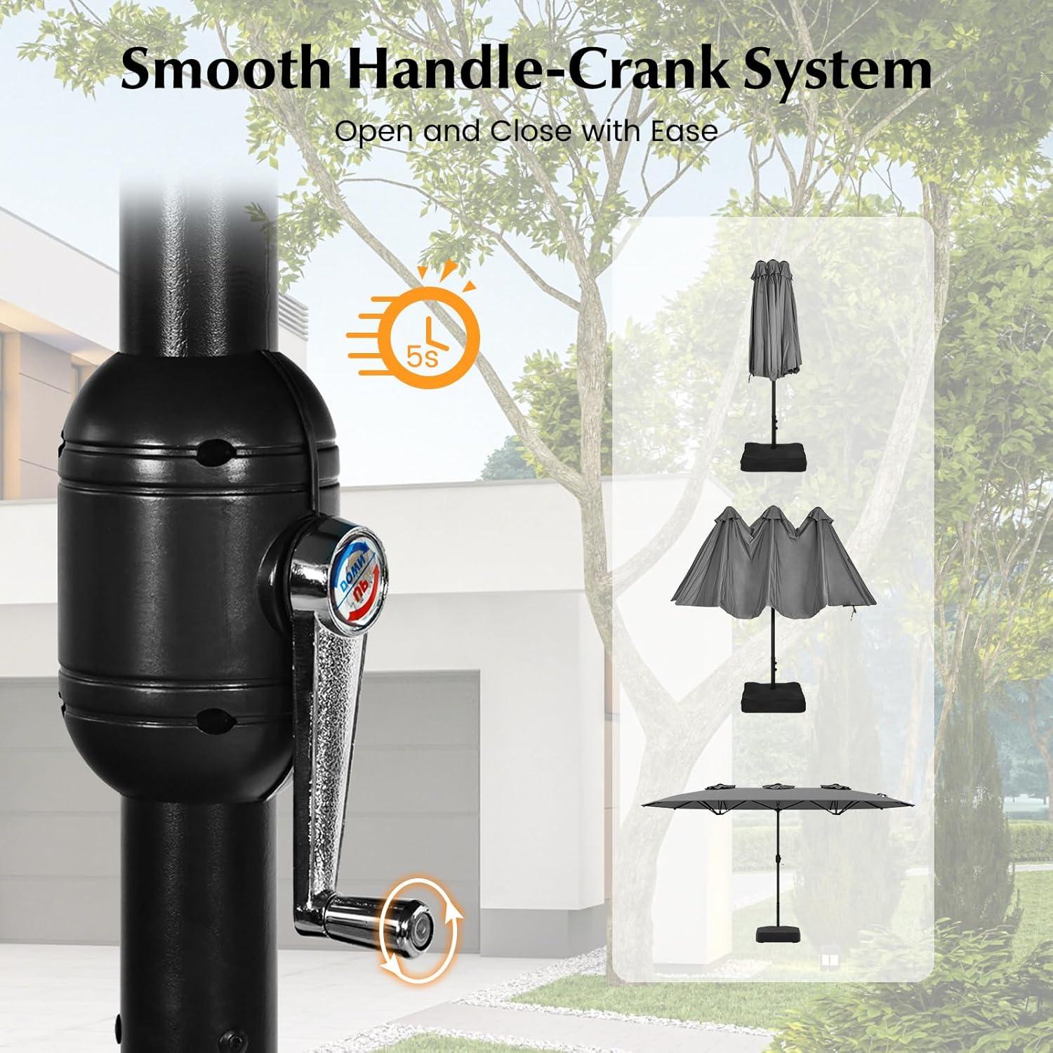| Generous 15 ft double-sided umbrella provides expansive shade with smooth hand-crank operation | Umbrella’s size may block views or pathways if not positioned thoughtfully |