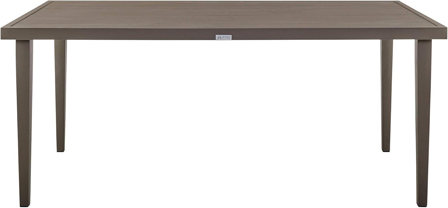 This modern outdoor dining set exudes a sleek, contemporary vibe with its clean lines and muted gray tones, perfectly suited for any outdoor setting.Crafted from eco-friendly aluminum, the table and chairs offer durability and resistance to rust and corrosion, making them ideal for all kinds of weather. Despite its robust construction,the lightweight nature of the aluminum frame allows for effortless rearranging to fit your preferred layout. The set comfortably accommodates up to six chairs around its spacious 71-inch table, making it a great choice for gatherings or casual meals with family and friends.
