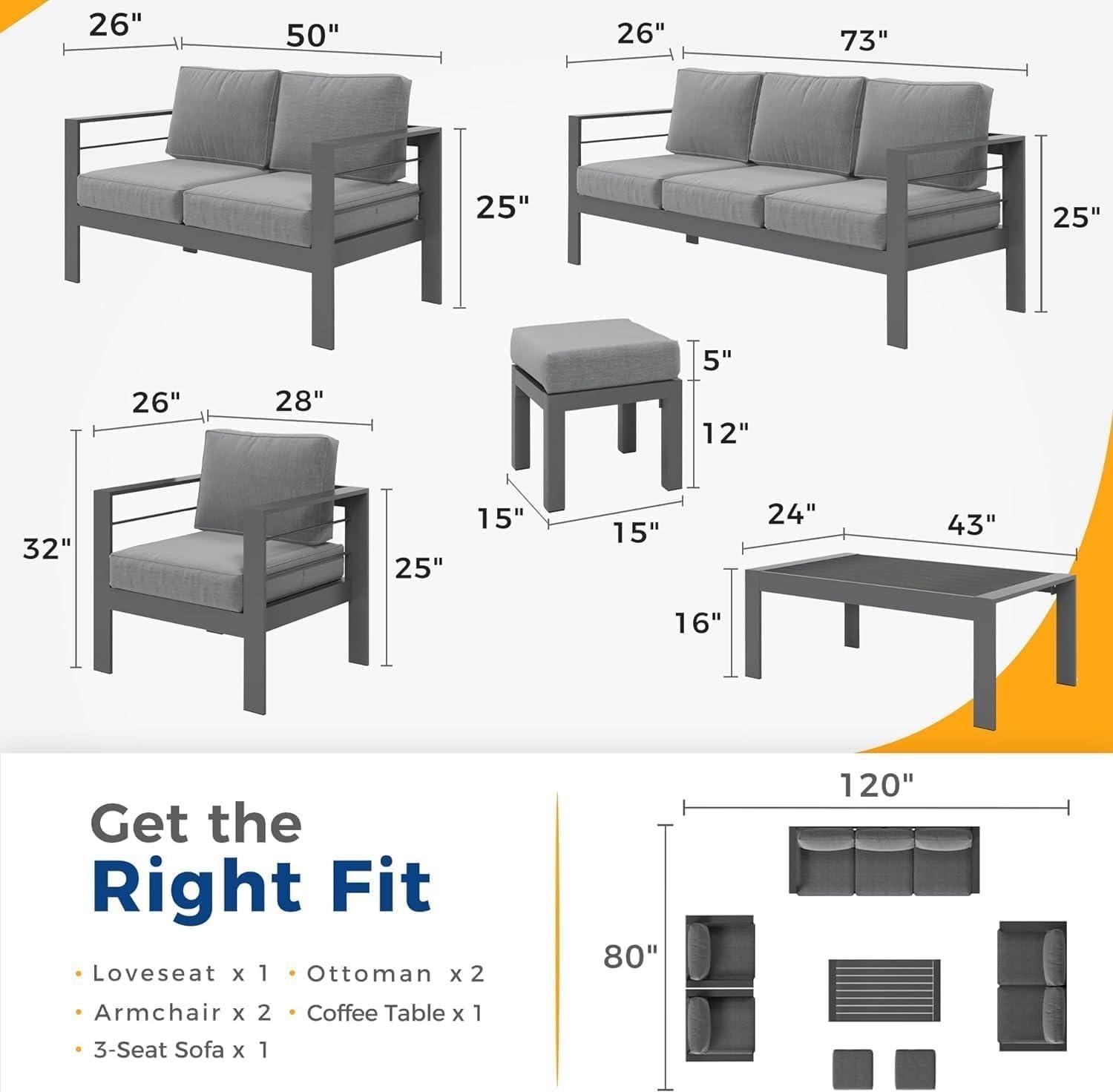 Our time with this outdoor furniture set has been truly remarkable. The metal sectional sofa serves as the centerpiece, delivering both durability and modern elegance with its sturdy frame and sleek design. The clean lines fit flawlessly into our balcony space, elevating the aesthetic without overwhelming it. The 5-inch thick cushions provided remarkable comfort, perfectly cushioned yet firm enough to maintain shape. Thay stayed securely in place, even during our most spirited gatherings, making every seating experience cozy and inviting. The versatility of the sectional layout allowed us to customize the arrangement to suit our space, enhancing both functionality and style.