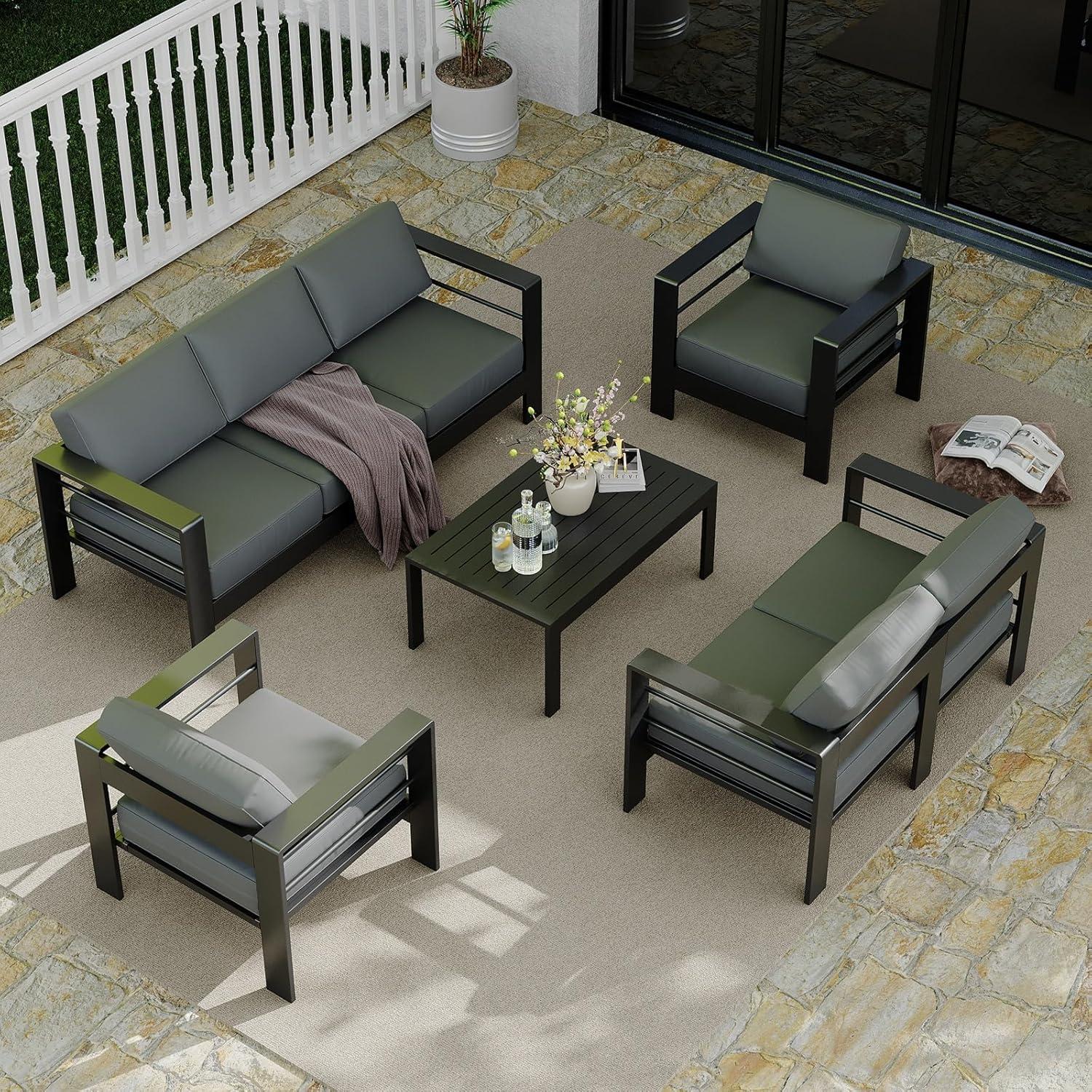 We recently had the chance to set up and enjoy the GarveeLife 7 Seats Aluminum Patio Furniture Set, and we’re excited to share our experiance with you. This five-piece outdoor sectional caught our eye with its modern, sleek design and versatile dark gray color, which seamlessly blends into any patio or garden space. From the sturdy yet lightweight aluminum frame to the plush, thick cushions, every element seems thoughtfully crafted for both comfort and durability. As we explored its flexible arrangement options and low-maintenance features, it became clear that this set aims to strike the perfect balance between style and practicality for outdoor living. Let’s dive into what stood out to us during our time with this furniture set.