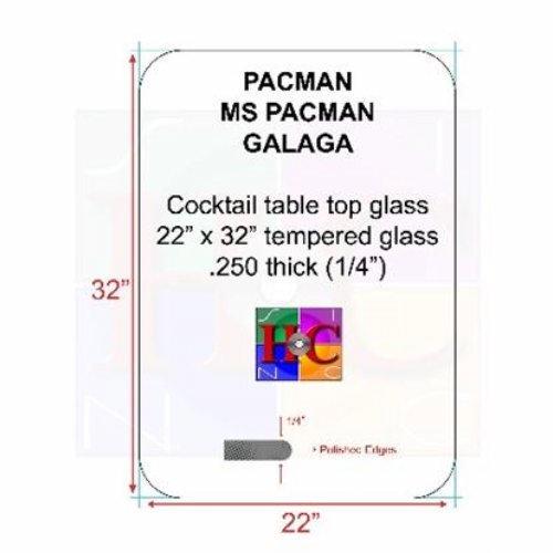 pac-Man, ms. Pac-Man, Galaga, Tron | 32″ x 22″ x 0.25″ | 4 inches | Tempered safety Glass, Tinted Gray |