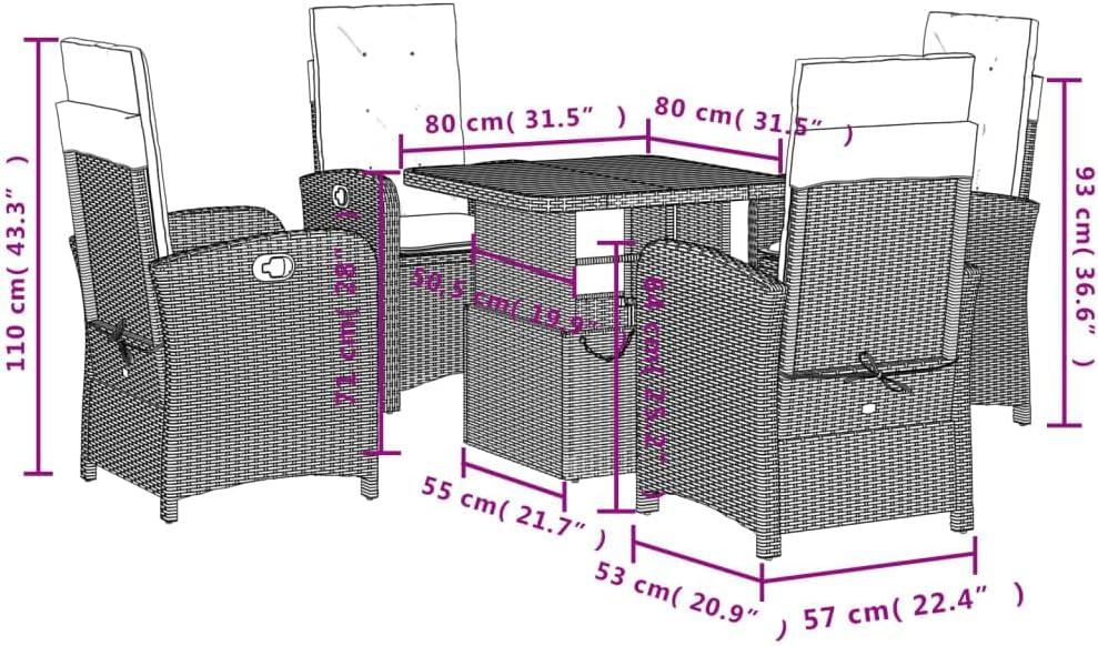 With the vidaXL 5 Piece Patio Dining Set – Adjustable Tabletop & Reclining Chairs with Cushions, Gray Poly Rattan & Steel, Garden Patio Backyard, you notice it easing into ordinary days rather than arriving like a new announcement. Over time, as the room is used in daily routines, chairs drift toward conversation spots, cushions develop familiar hollows, and the woven surfaces soften where hands and plates pass most. In regular household rhythms the set picks up small marks and warm spots of use and becomes part of the background to coffee, homework, and slow evenings. After a while it stays.