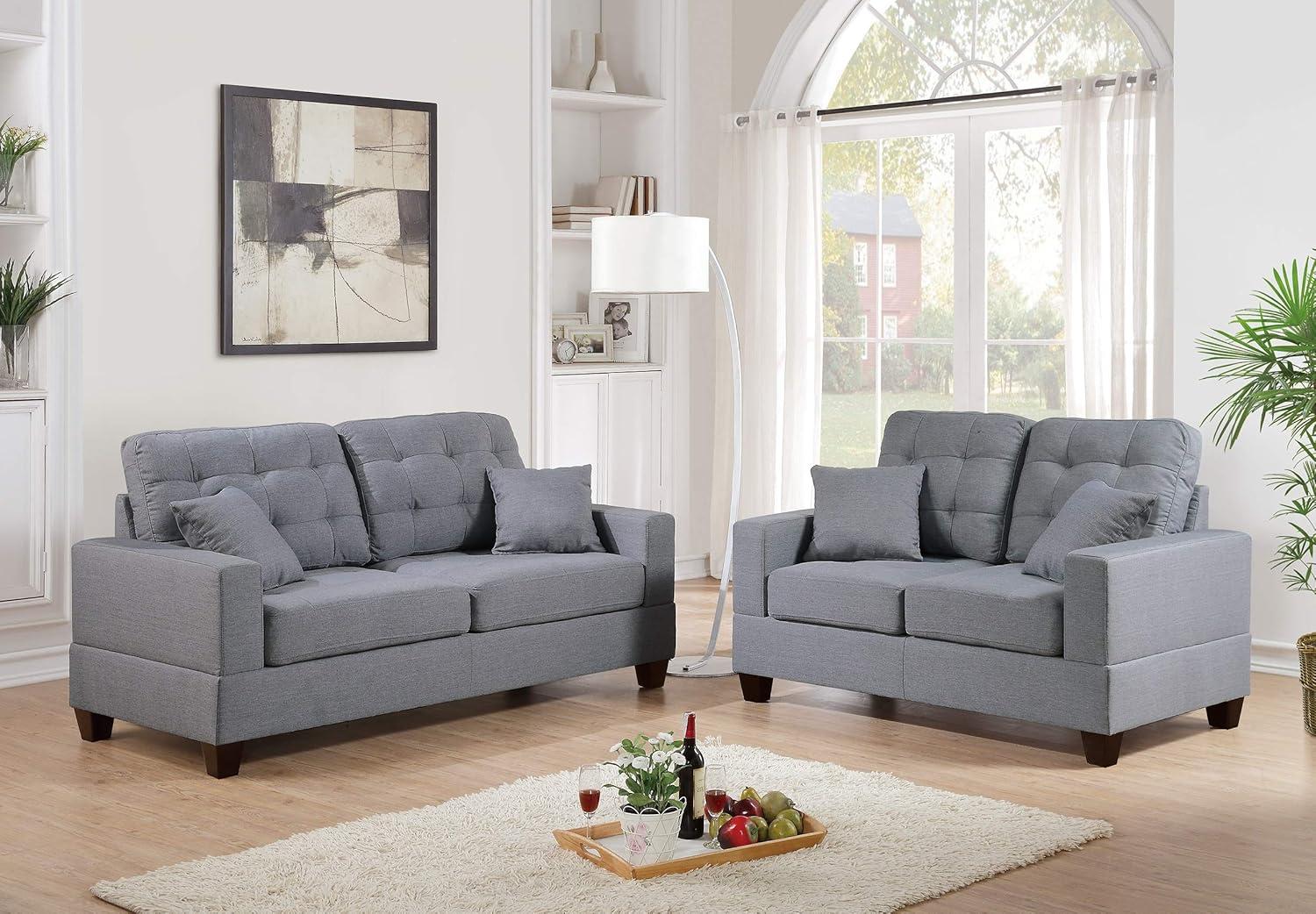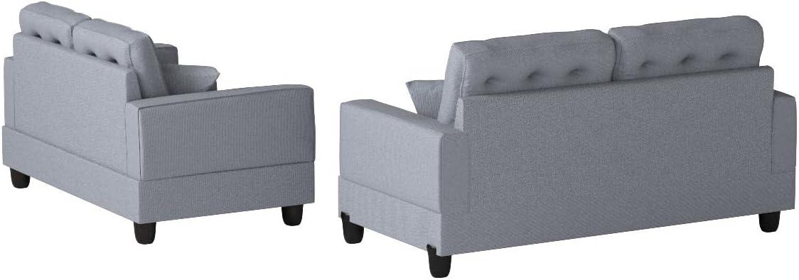 Right out of the box, the set impressed us with its sleek, contemporary design and high-quality feel.The upholstery features a soft polyfiber fabric that closely mimics linen, giving it a laid-back yet refined texture. The button tufted backrest adds a subtle touch of elegance, while the plush cushions filled with thick foam promise comfort during extended use. Both the sofa and loveseat-spacious enough to seat five comfortably-are supported by solid wood legs that contribute to the sturdy construction and elevate the overall look. The neutral grey shade seamlessly blends into various living room styles, adding versatility to this eye-catching ensemble.