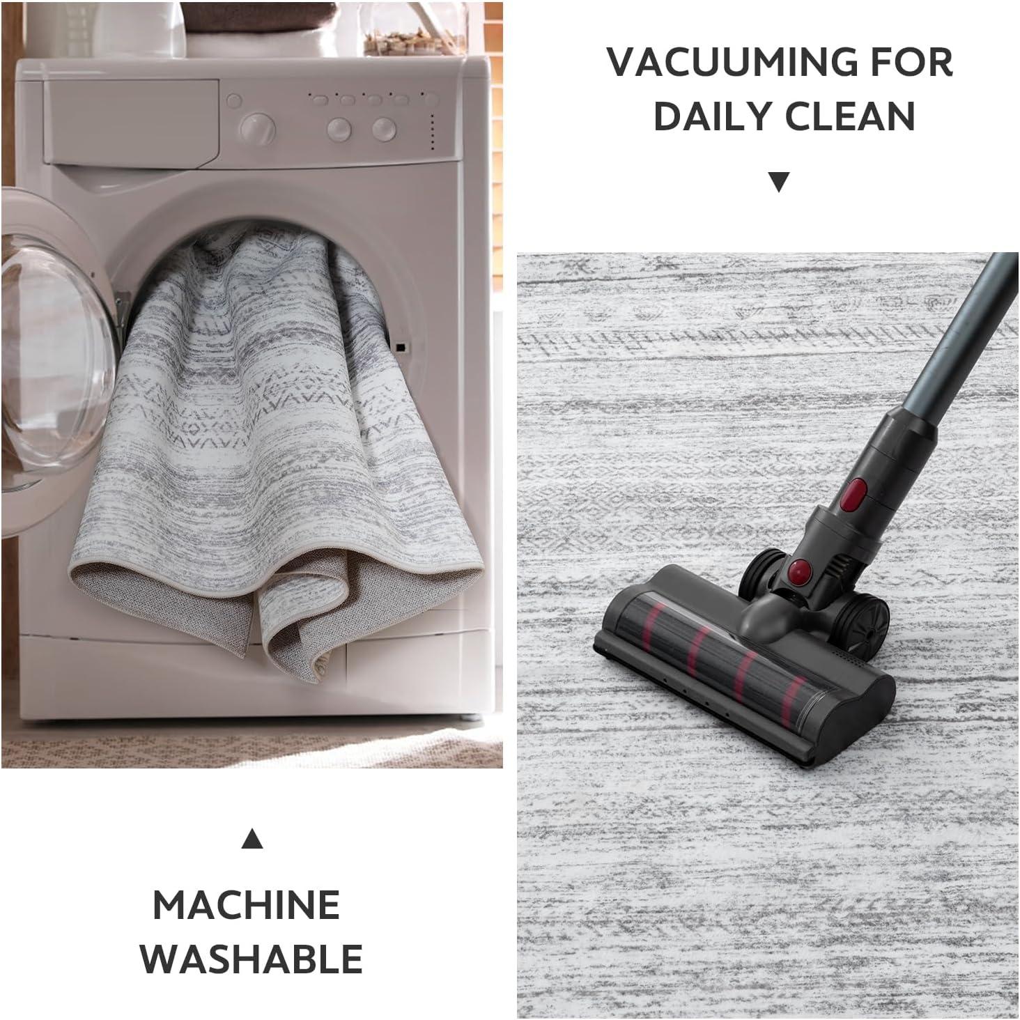 | Non-slip TPR backing eliminates slipping without needing an extra rug pad. | Grey tones can sometimes show pet hair or dirt more visibly, requiring regular cleaning. |