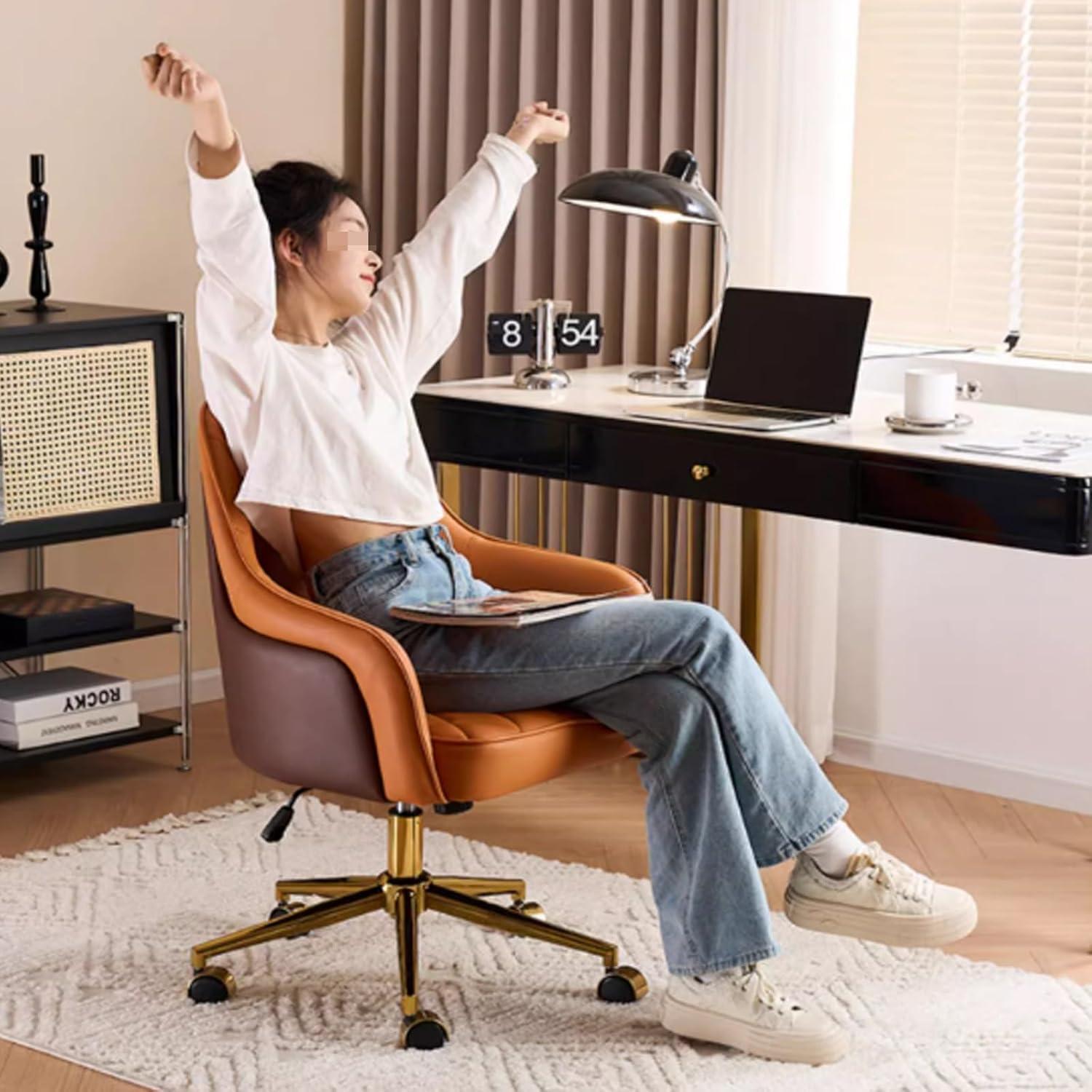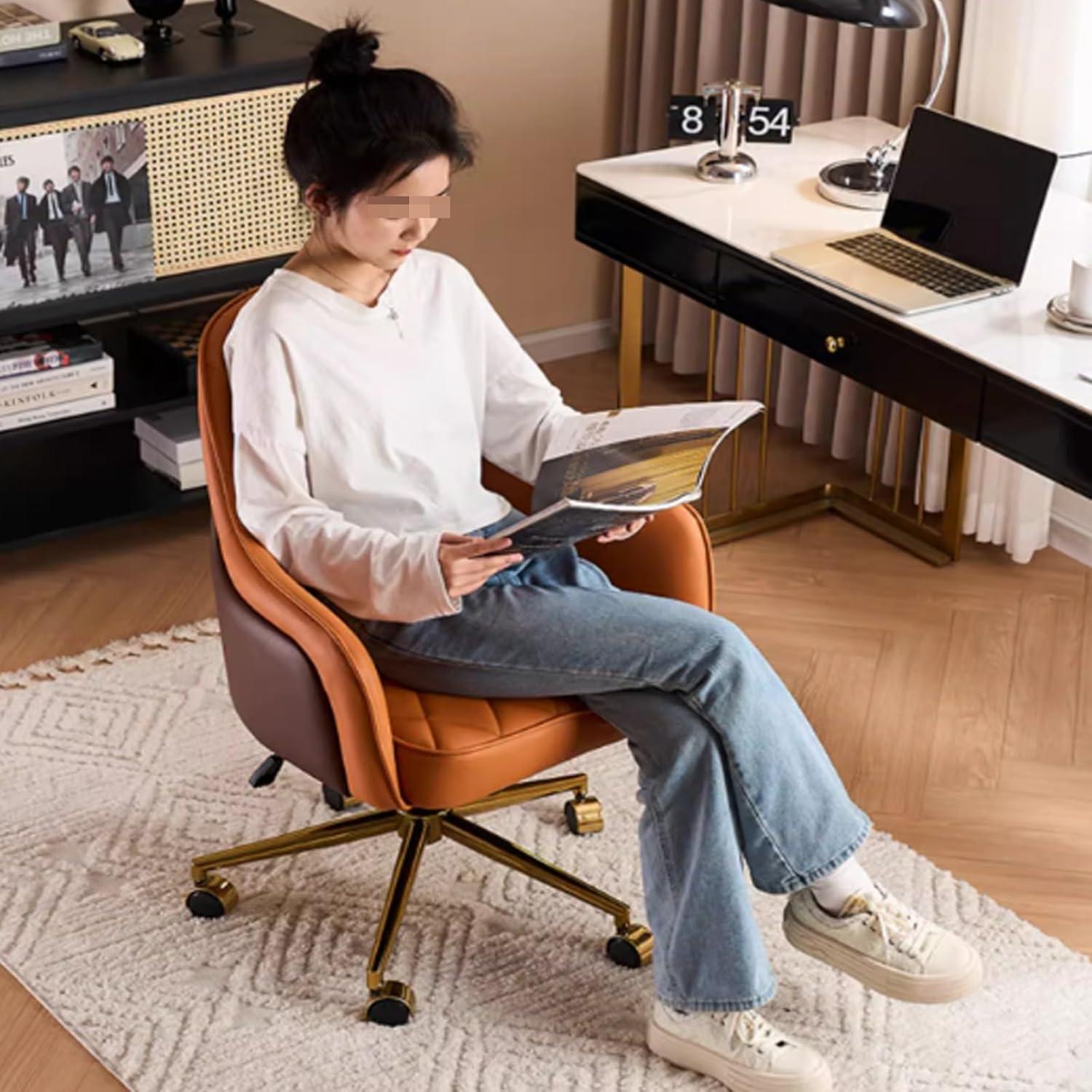 Our experience with this chair highlights its remarkable adaptability across multiple spaces, blending effortlessly into the living room, bedroom, or study without compromising on style or comfort. The luxurious first-layer cowhide upholstery paired with high-density foam ensures that it remains a cozy retreat after long hours, whether we’re diving into work or relaxing with a book. Its ergonomic design,featuring well-shaped armrests and supportive backrest,truly aids in maintaining good posture regardless of the room it’s placed in.The adjustable height mechanism and smooth 360-degree swivel on gold-finished legs make transitioning between tasks or relaxing seamless, enhancing overall functionality in versatile home settings.