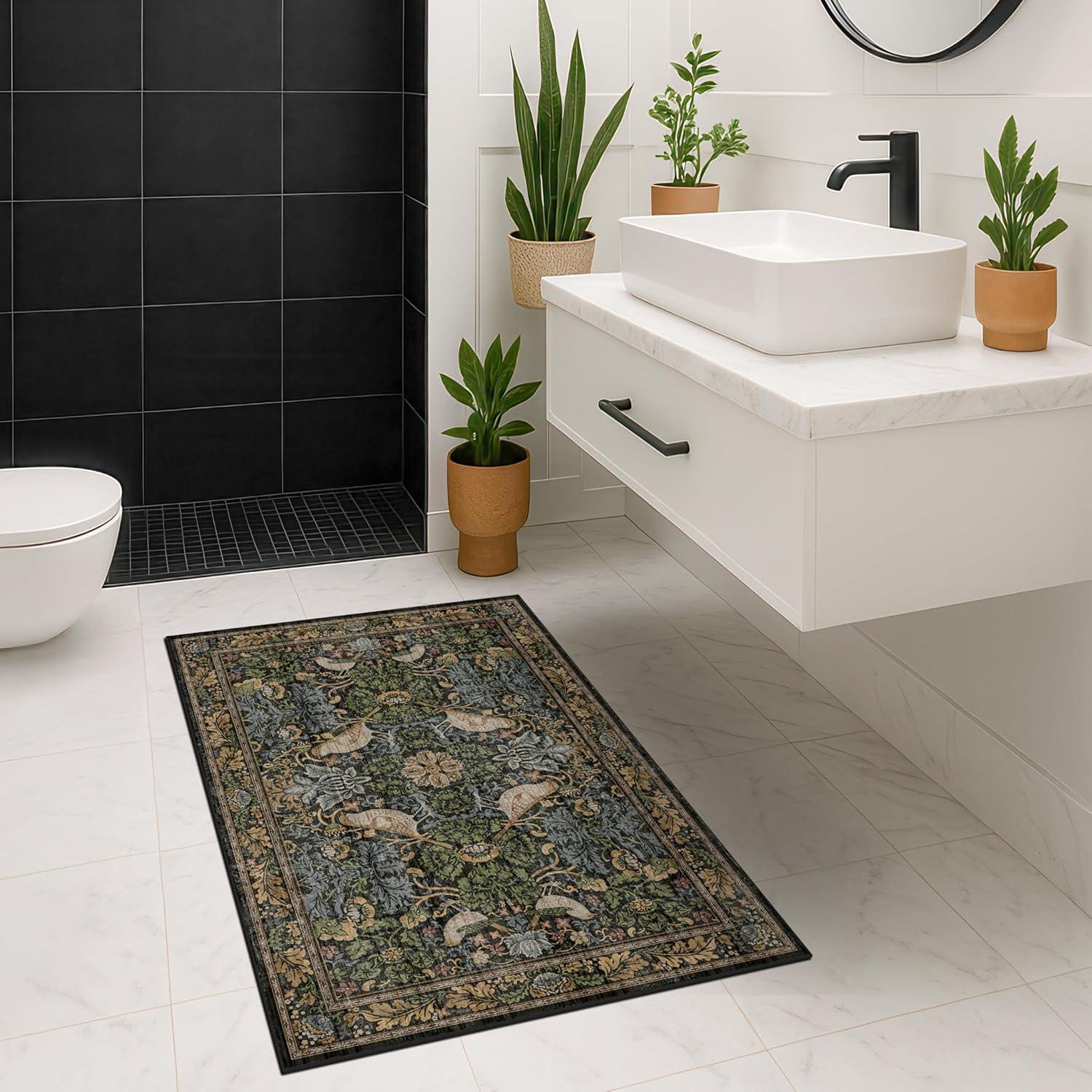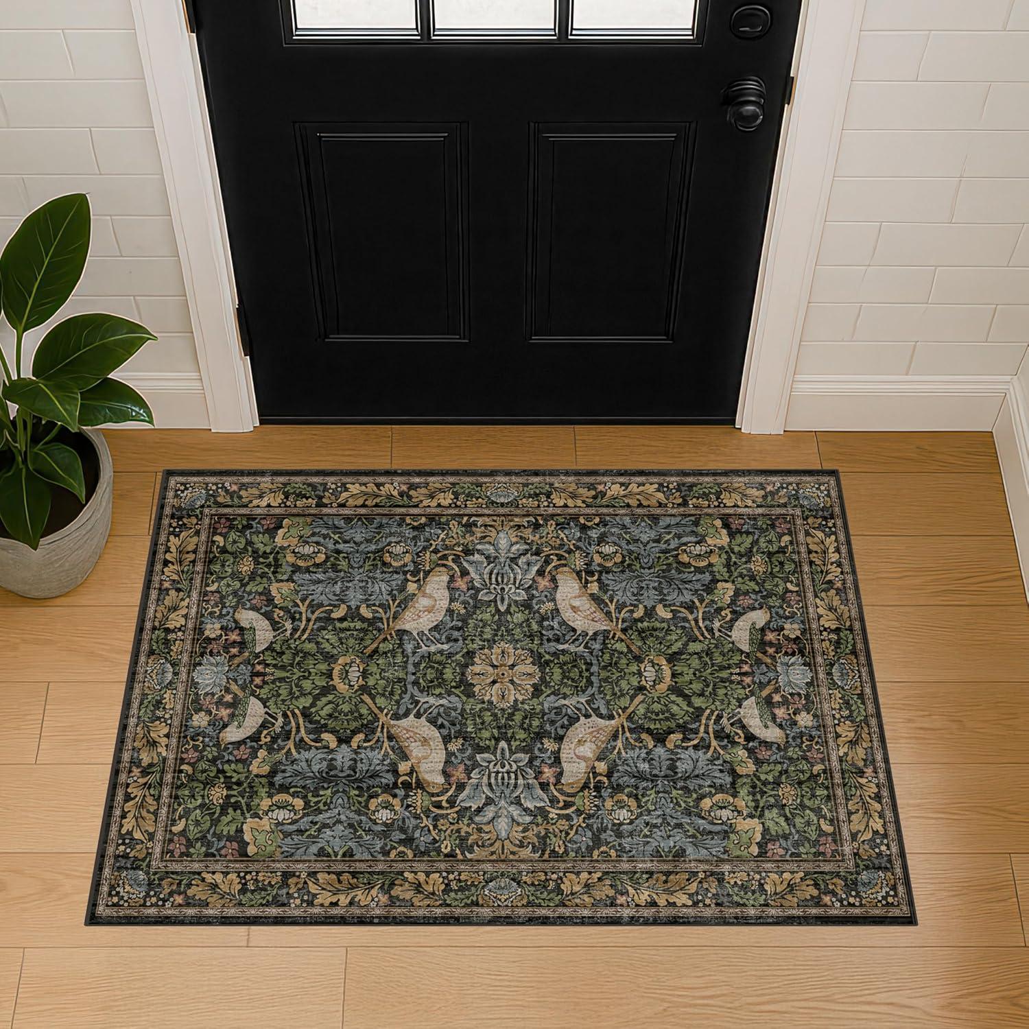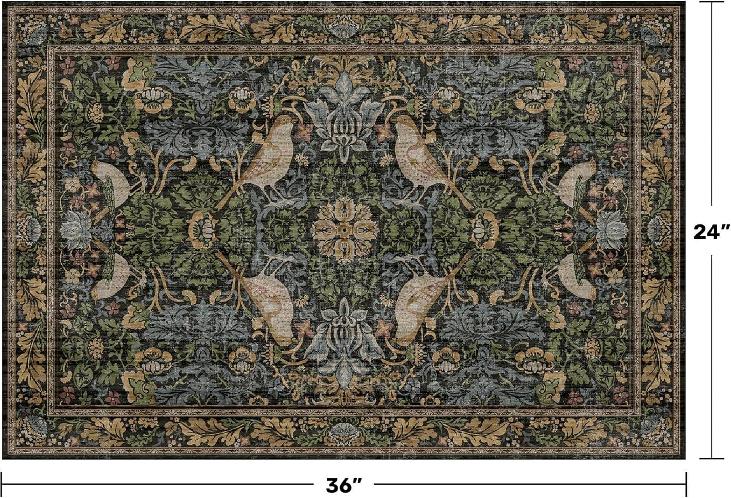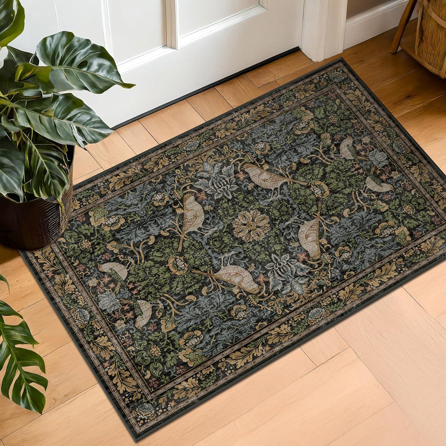 To add both warmth and timeless style to our living spaces,choosing this rug has been an exceptional decision. Its blend of charcoal, olive, and slate tones paired with intricate floral and bird patterns evokes a Victorian maximalist charm that seamlessly complements farmhouse or vintage-inspired décor. The low-pile design not only provides a soft,luxurious feel underfoot but also withstands the bustle of high-traffic areas like kitchens,bathrooms,and entryways. We appreciate how the non-slip rubber backing ensures it stays securely in place, giving us peace of mind especially in busy households with kids and pets.