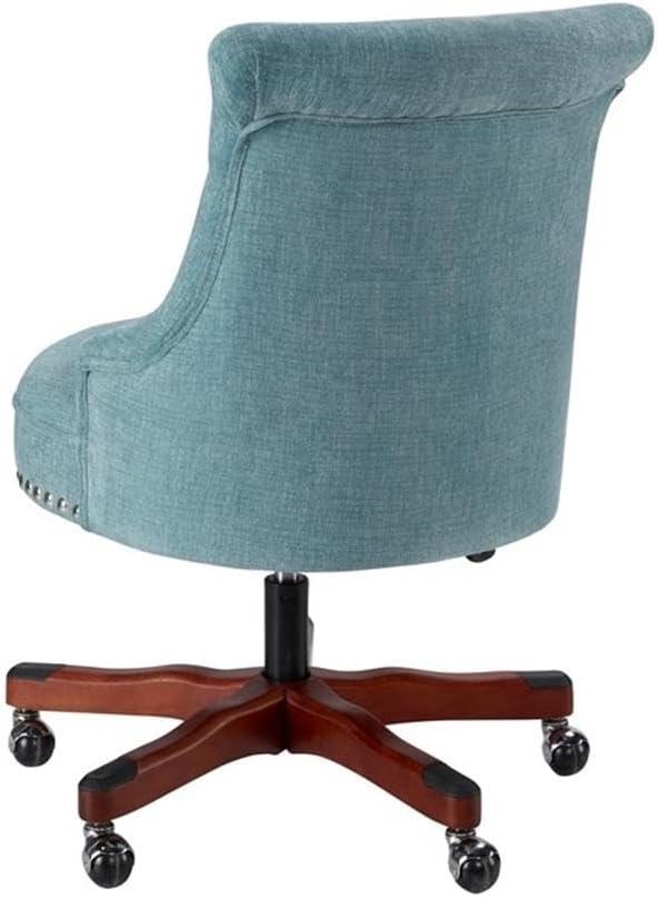 when we place this chair side by side with other office seating options, its value stands out clearly. The plush fabric upholstery in a vibrant aqua blue not only adds a lively splash to our workspace but also holds up well against daily use, thanks to the durable 100% polyester material. The combination of pine and rubberwood in the frame provides a sturdy foundation that competes with pricier models boasting similar solid wood construction.adjustable seat height and smooth gas lift mechanisms meeting BIFMA standards ensure ergonomic comfort, which isn’t always guaranteed in this price range. Plus, the stylish silver nail head accents give it a refined touch, making it feel more upscale than it costs.