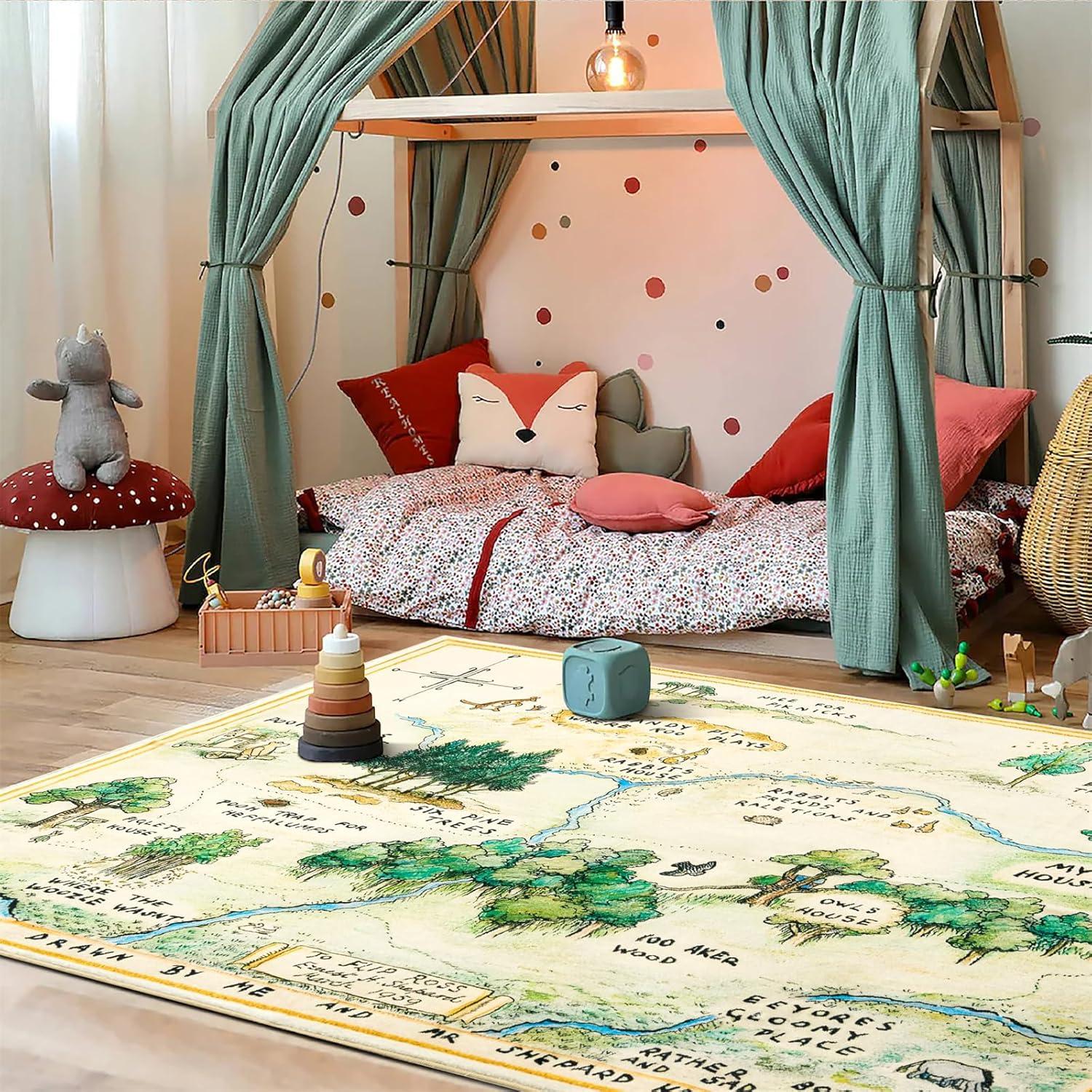 No matter where we set it, the rug’s whimsical woodland design adds a charming, vintage touch without overpowering the space. Its washable and stain-resistant surface reassures us that placement is flexible, so feel free to experiment across multiple spots as your kids’ interests evolve.