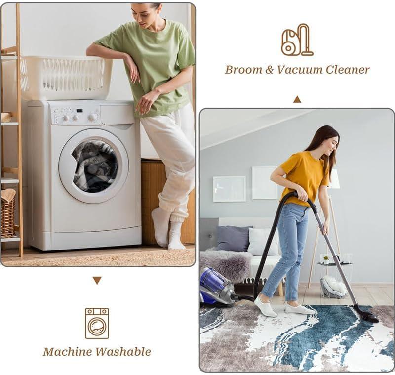 • Machine Washable: The short pile design of this washable rug is easy to maintain using an upright vacuum or robotic vacuum cleaner. The area rug is also machine-washable for fast and hassle-free cleaning. After washing, a low-temperature iron can help to keep the living room carpet’s surface flat and smooth.