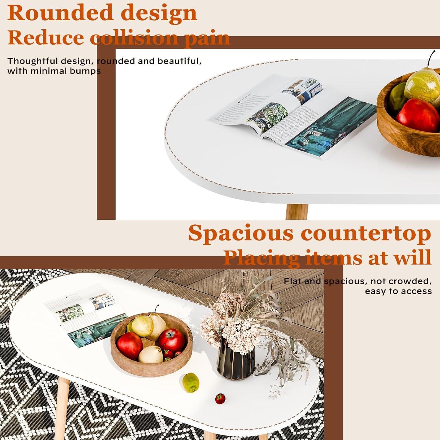 Our living space has been notably uplifted by this piece’s sleek, mid-century modern design. The smooth, oval tabletop with rounded edges offers a soft yet structured look that blends seamlessly with both contemporary and minimalist decor. Its white finish brightens the room, creating an inviting atmosphere without overpowering other elements. The solid legs provide not just stability but also an aesthetic balance, giving the table a grounded presence that feels both timeless and fresh.This design effortlessly encourages a cozy environment, ideal for social gatherings or quiet moments with a cup of tea.