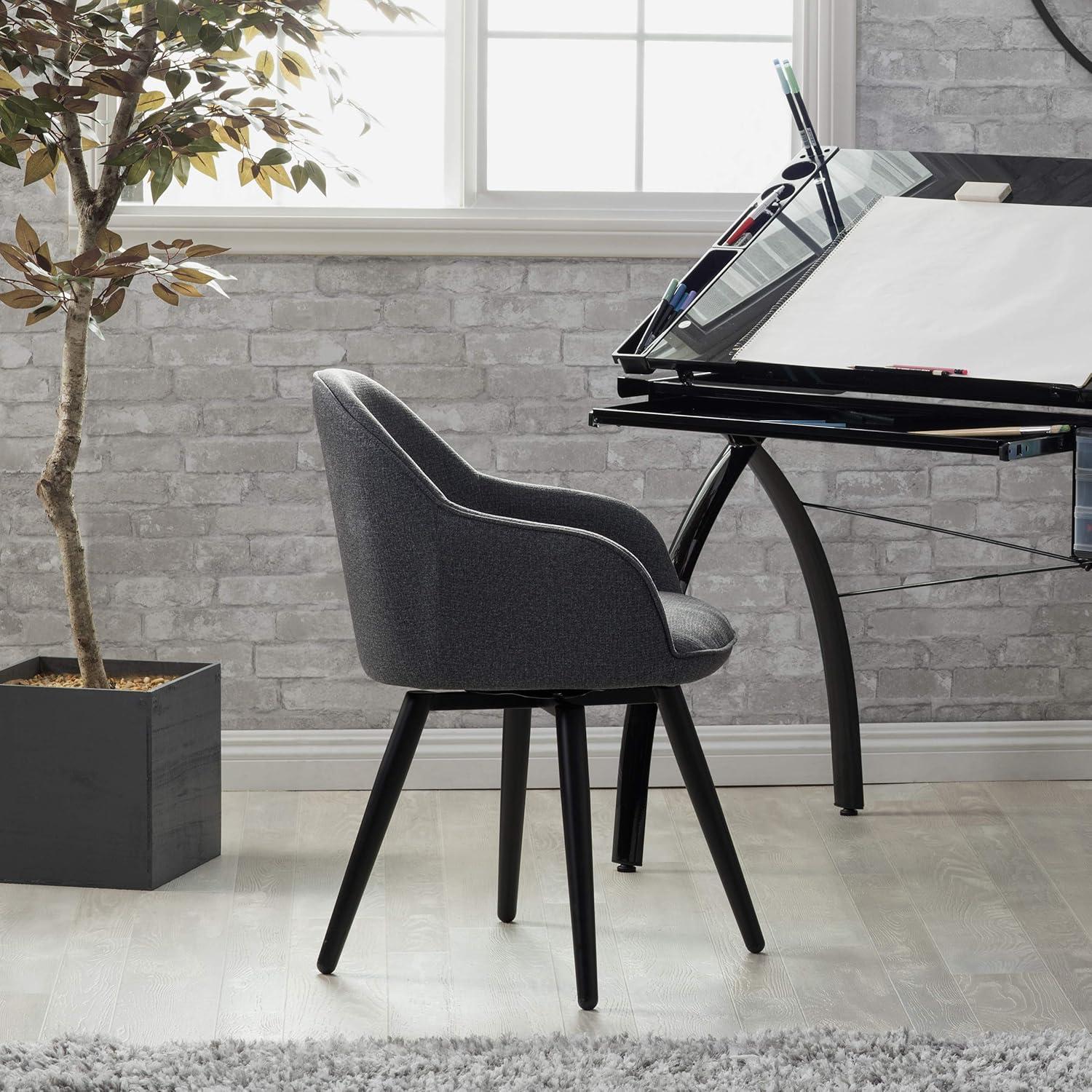 This chair’s sleek charcoal gray upholstery and compact dimensions make it a versatile choice for different interiors. Whether paired with a glass desk in a modern home office or placed alongside a minimalist dining table, its firm foam seat and flared arms add both comfort and style without overwhelming the space.the unique tweed-like polyester fabric blends seamlessly with contemporary palettes, while the metal frame’s industrial edge complements loft apartments or urban-inspired rooms. Its swivel functionality also enhances practicality, making it an excellent addition to flexible setups like craft corners or reading nooks.
